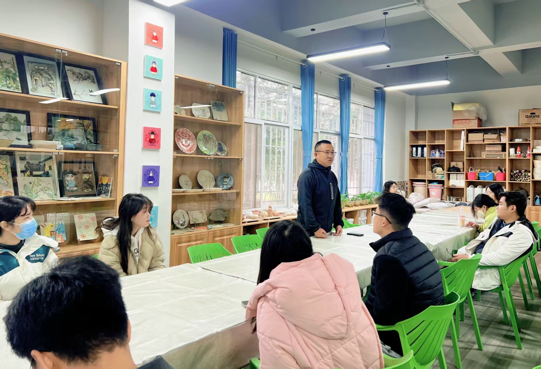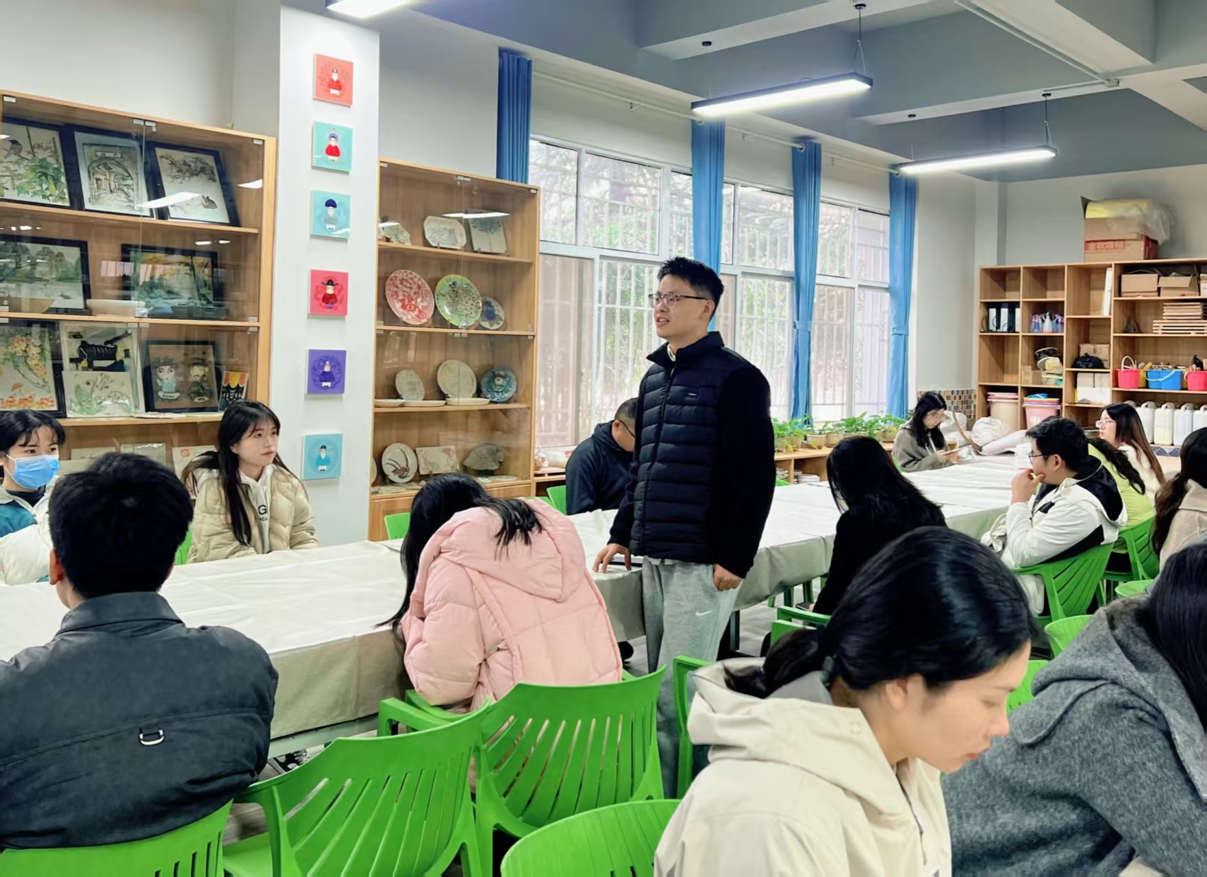 12月11日上午,2025学生工作业务分享沙龙第三期活动在光谷校区与梧桐湖校区同步举行。其中,光谷校区在艺术楼陶艺馆开展,本次活动以“毕业生就业工作实务研讨与能力提升”为主题,特邀艺术设计与传媒学院的焦洁老师共同参与,活动由思想政治教育办公室主任马祁担任主讲。