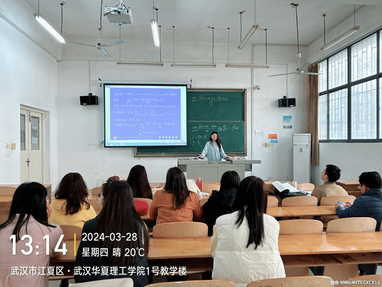 首先登场的是姜文雅老师,她讲课的内容是“偏导数”。在课程内容导入部分,她先回顾了上学期所学的“一元函数在某点处导数的概念”,引导学生思考,推广到二元函数的情形。在讲课过程中,姜老师教态自然大方,具有亲和力,使用教鞭,清晰明了地指示了需要重点关注的知识点,能将学生的注意力集中到所讲授的内容上。