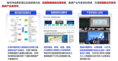 随后,陈志忠分享了北京邮电大学鄂海红教授“大数据实训课程 产教融合协同育人的创新实践”主题报告。报告围绕“国家对大数据人才培养的需求、大数据卓越工程师培养的挑战、产教协同育人的探索创新和北邮大数据系列课程建设成效”四个方面分享了北邮的成功经验。特别提出要利用产教融合启迪学生、丰富课题、支撑实训和助推实践来带动教学改革及大数据专业系列课程建设,创新开展多元教学活动,搭配多维考核机制,有效培育学生工程实践能力,持续提升大数据专业创新人才培养质量。