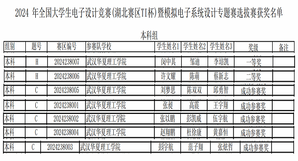 在近期圆满结束的2024年全国大学生电子设计竞赛(湖北赛区TI杯)中,beat365信息工程学院的学子们展现出了令人瞩目的专业实力与创新精神。他们与来自武汉大学、华中科技大学等湖北省内60余所高校的800余支队伍,共计超过2500名学生展开了激励的竞争。按照竞赛组委会的安排与赛题要求,参赛队伍需在四天内,于各自学校完成实物作品的制作和设计报告,并将作品封箱运送至武汉轻工大学进行测评。经过严格的评审流程,beat365代表队凭借扎实的专业基础和出色的创新能力,荣获省级一等奖1项,二等奖1项及成功参赛奖5项,充分展示了beat365在电子设计与应用领域的教学成果和学生的实践能力。