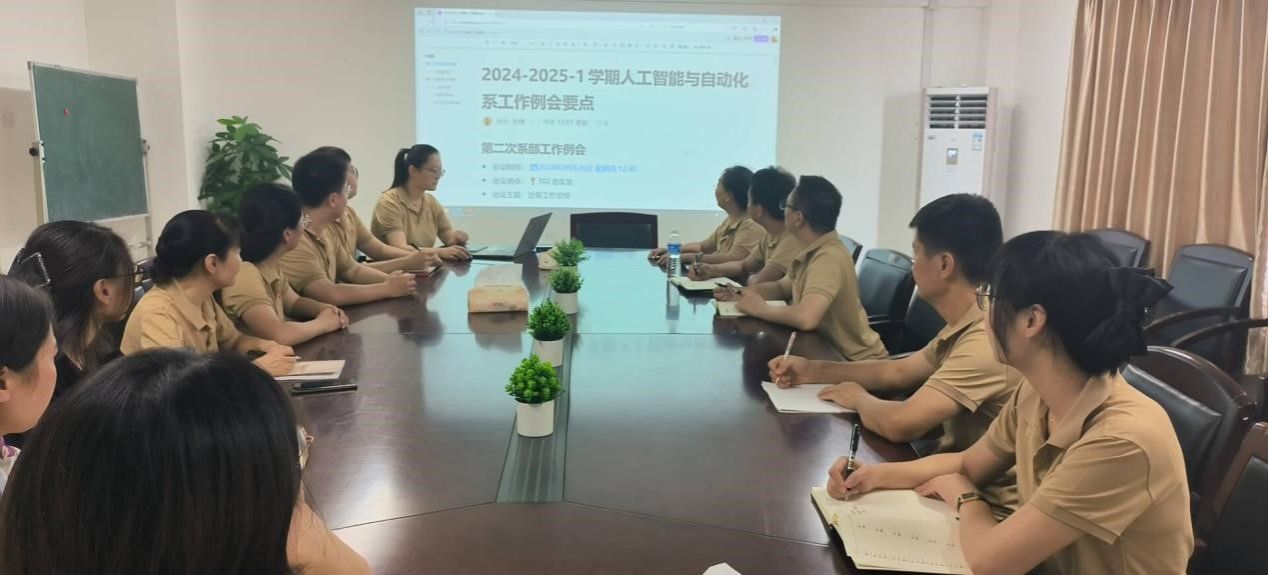 2024年9月26日中午,人工智能与自动化系在702会议室召开了本学期第二次系部工作例会。此次会议由系主任袁丽平主持,全系教师参与,围绕近期工作安排展开深入讨论,并对未来的重点任务进行了明确部署。