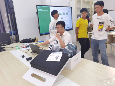 在讲座的最后,柯老师组织了一次别开生面的实践活动。新生们以小组为单位,亲手操作智能机器人,初步体验了人工智能技术的应用。这次实践活动不仅增进了新生间的互动,还让他们对专业知识有了更直观的理解,进一步激发了他们的学习兴趣。