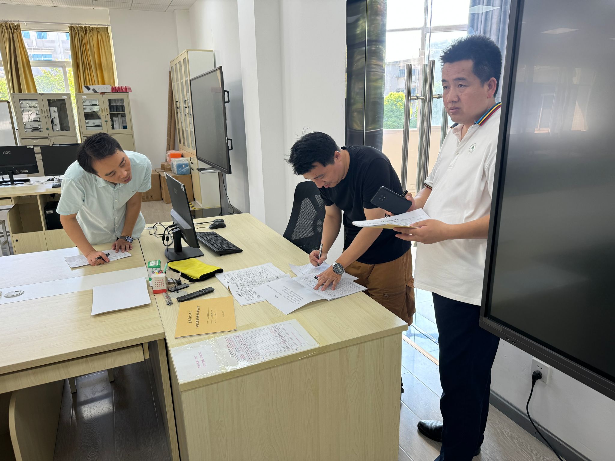 检查过程中,重点对实验室的用电安全、消防安全、仪器设备安全、环境卫生、实验日志填写、实验设备维护管理以及实验室安全规章制度完善及执行情况等方面进行了逐一检查。在检查过程中,对发现存在安全隐患的位置及时指出并落实整改,对可优化的不规范行为如日志填写等内容进行记录并结合实验室检查项依次进行打分。金主任在检查中强调,实验室安全工作是学院的头等大事,必须高度重视,不能有丝毫放松情绪和侥幸心理。各实验室负责人要切实履行安全管理职责,加强日常巡查和隐患排查工作,及时发现并指出存在的问题,联合授课教师共同管理约束。同时,还需要加强实验室安全教育培训工作,提高师生的安全意识和防范能力,共同营造安全、稳定、和谐的实验环境。