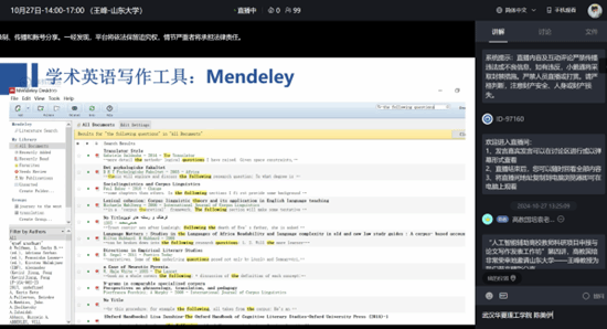 最后一场培训,王峰教授以深度讲解科研论文的写作应用进行收尾,他详细讲解了利用AI进行科研论文写作的全流程设计,包括选题、文献综述、实验设计、数据分析到论文撰写、修改润色等,展示了AI工具如何在每个环节提供有力支持。