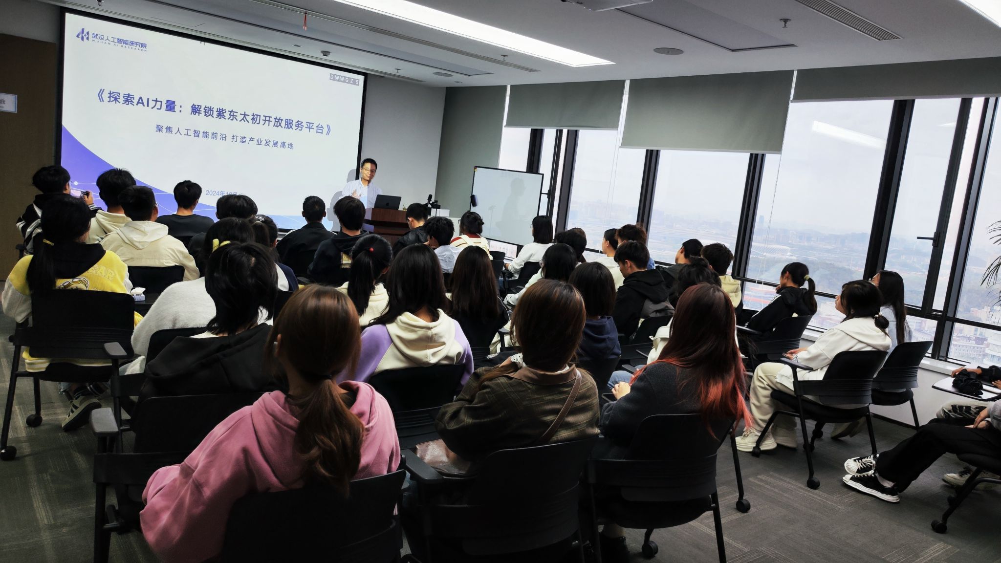武智院讲师以《探索AI力量:解锁紫东太初开放服务平台》为主题,为同学们带来了一场别开生面的知识分享。讲师详细介绍了大模型的发展历程和行业现状,重点讲解了武智院自主研发的“紫东太初”大模型,以及在医疗、工业、教育、政务等领域的应用实例。