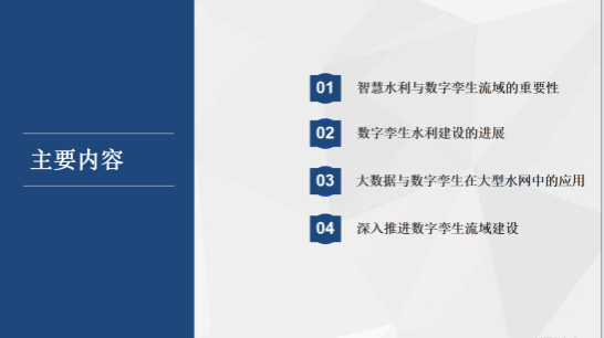 在智慧水利的新时代,数字孪生流域建设正成为推动水利事业高质量发展的关键力量。近日,大数据与人工智能工作室邀请湖北省汉江河道管理局监利东荆河管理分局局长鞠发维在线上作了题为“智慧水利与数字孪生流域研究与发展”的报告;大数据与人工智能工作室师生参与了线上报告会,报告由大数据与人工智能工作室负责老师陈志忠主持。