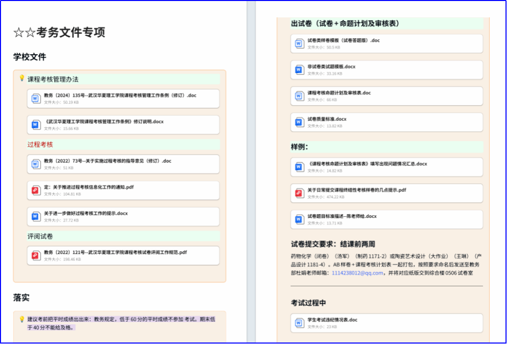 规范考核材料的收集、整理与归档工作,包括试卷、命题计划及审核表、评分标准、成绩登记表等。所有材料需按照学校要求统一格式,经责任人签字确认后妥善保存,以备后续检查与复查。
