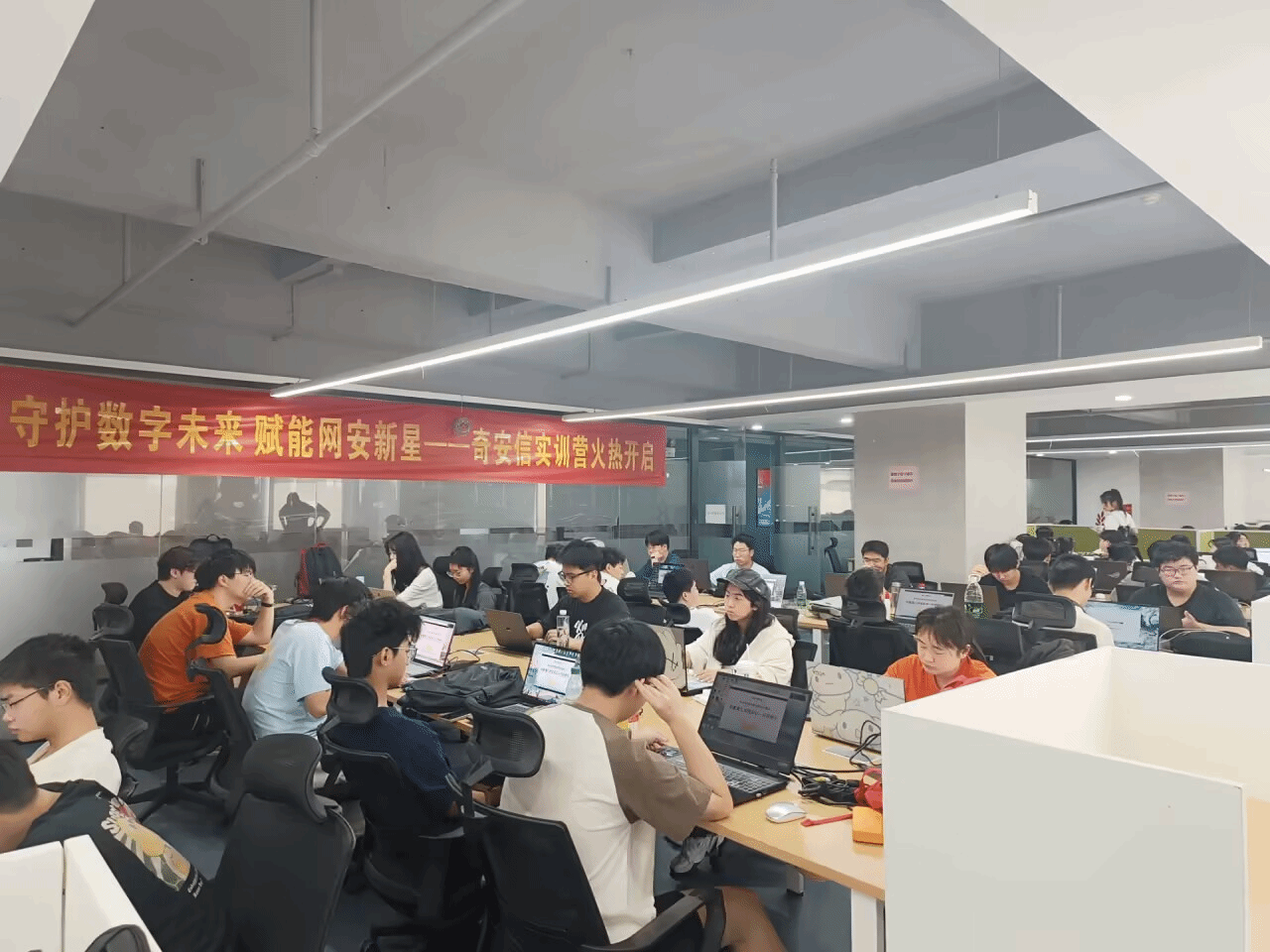 首日实训不仅让学生感受到企业一线工作的节奏与要求,也激发了大家进一步探索网络安全领域的热情。学生纷纷表示,能在奇安信这样高水平的企业实训,是一次难得的学习机会,期待在接下来的七周里不断积累知识、提升能力。