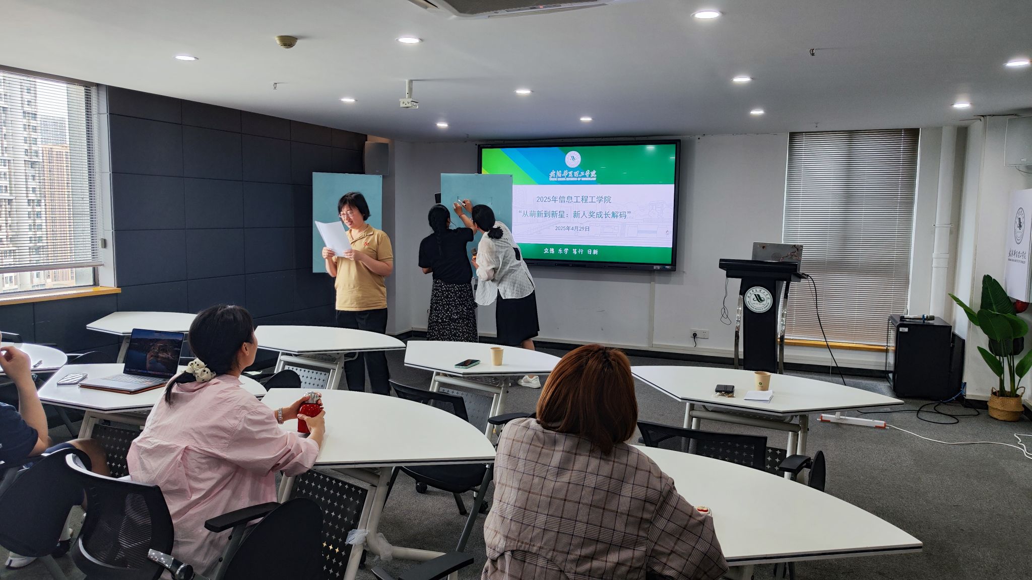 会议最后,王绪梅副院长为新老师们简单说明了晋升和评奖的要求,并对大家未来的发展给予厚望。这场充满活力与教育情怀的活动,恰似春末夏初的绵绵细雨,滋润着信息工程学院教育创新的沃土,孕育着未来教育的参天栋梁。