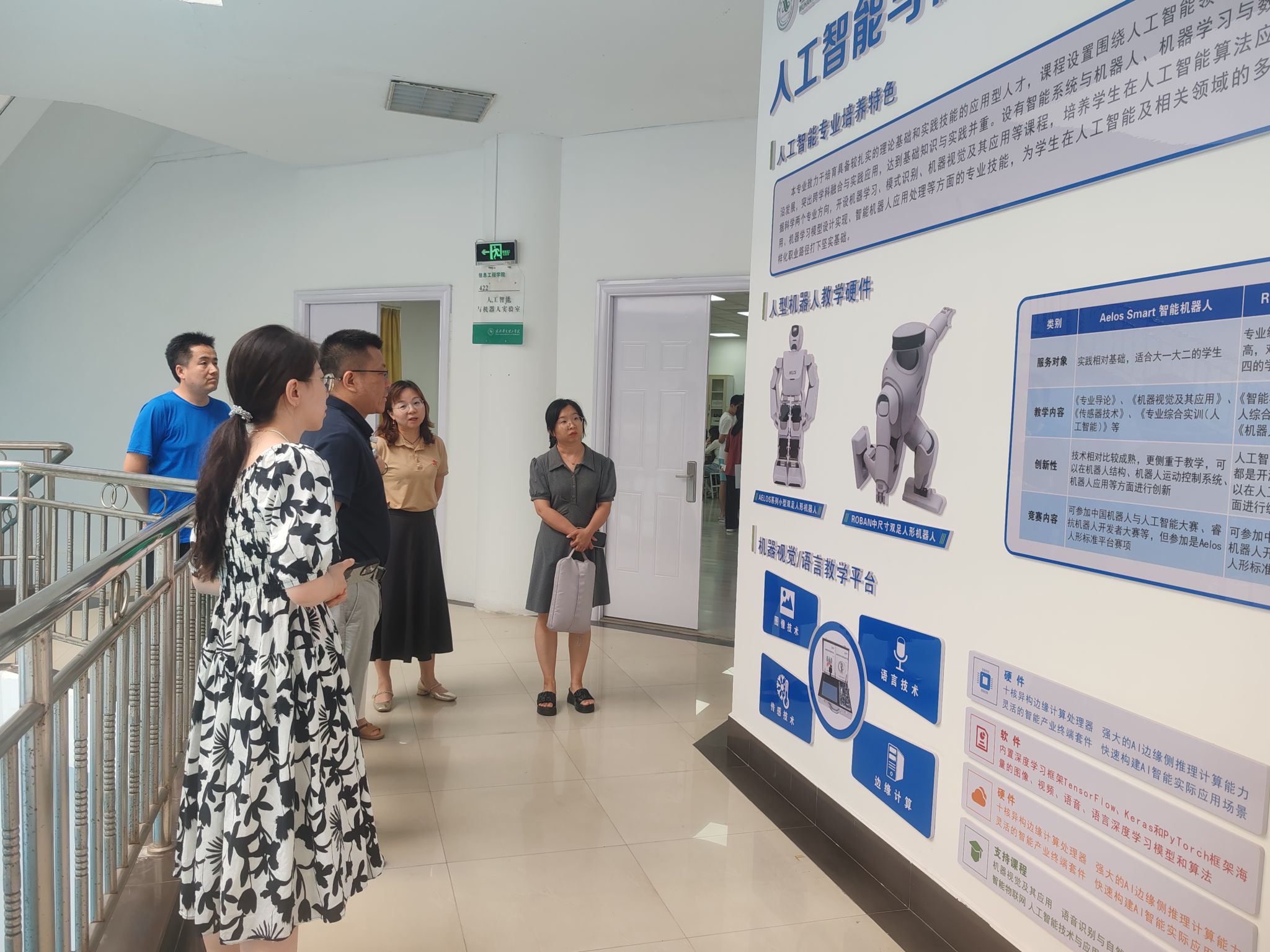 会上,党总支副书记张平首先介绍了学院概况与人才培养工作,并对武昌工学院领导的到访表示欢迎。随后,武昌工学院副院长张荆沙围绕三个核心议题展开调研:学生创新创业能力培养与学科竞赛、人工智能专业建设、传统专业缩招,停招问题。我院副院长赵京针对上述问题逐一回应并提出解决方案。人工智能与自动化系主任袁丽平通过PPT进行了完整的人工智能办学的专题介绍。最后,在金君主任带领下,与会人员参观了实验中心,深入了解华为鲲鹏合作办学理念。