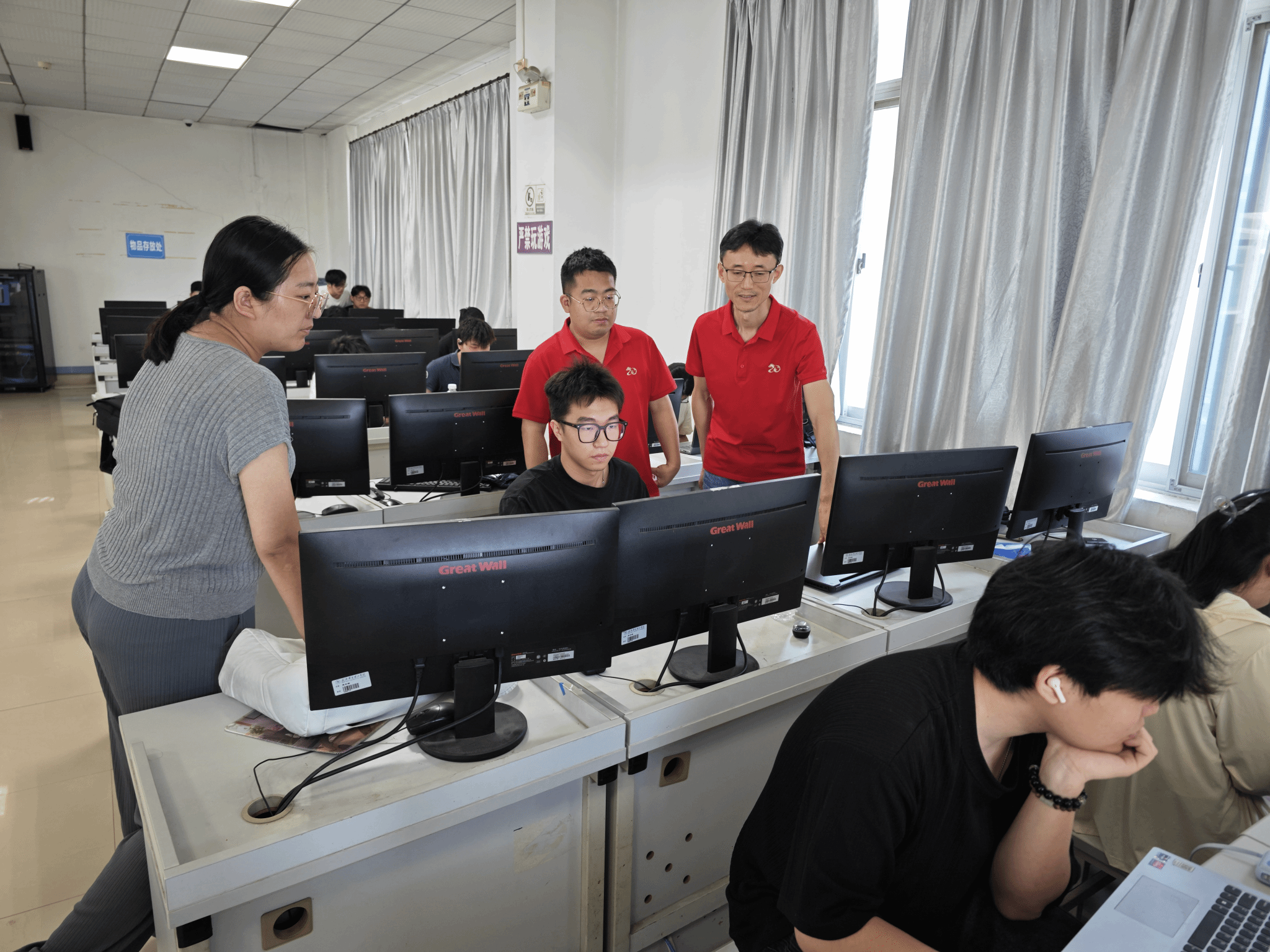 实习期间,信息工程学院领导多次亲临教学现场,与企业专家、师生深入交流,实时掌握实习动态,全力保障教学质量。校内指导教师全程跟进学生学习进度,及时为学生答疑解惑,与企业专家形成育人合力。