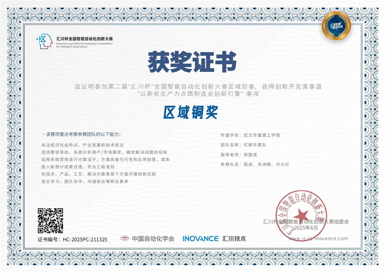 “汇川杯”全国智能自动化创新大赛 是由中国自动化学会主办,苏州汇川技术有限公司承办的一项探索性、实践性的工程创新活动, 旨在激发同学们把握产业趋势、学习工程技术的热情, 提高学生创新设计与解决复杂工程问题的能力,培养自主学习、 团队协作、沟通表达等职业素养。全国总决赛将于2025年8月7日至9日在苏州举行。