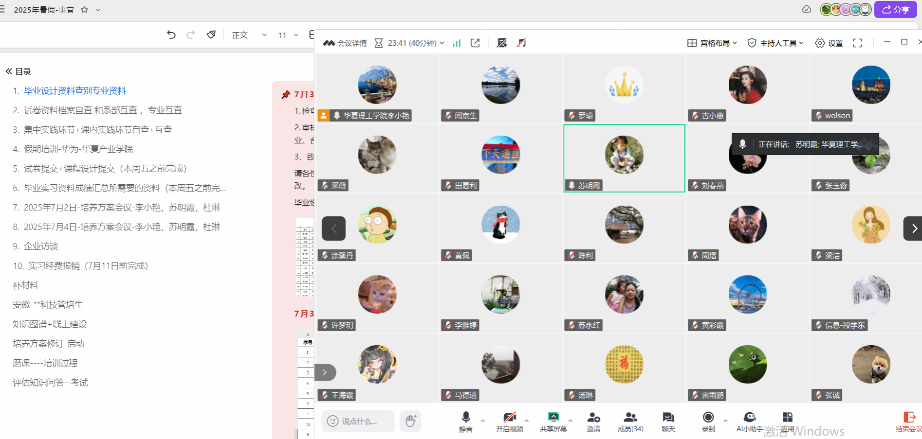 会议还提及基层教学组织会议、企业访谈、补材料、安徽科技管培生、知识图谱 + 线上建设等工作。系部主任李小艳强调,各项工作任务重、时间紧,希望全体教职工提高认识,严格按照时间节点和要求落实工作,确保暑假各项工作顺利完成。