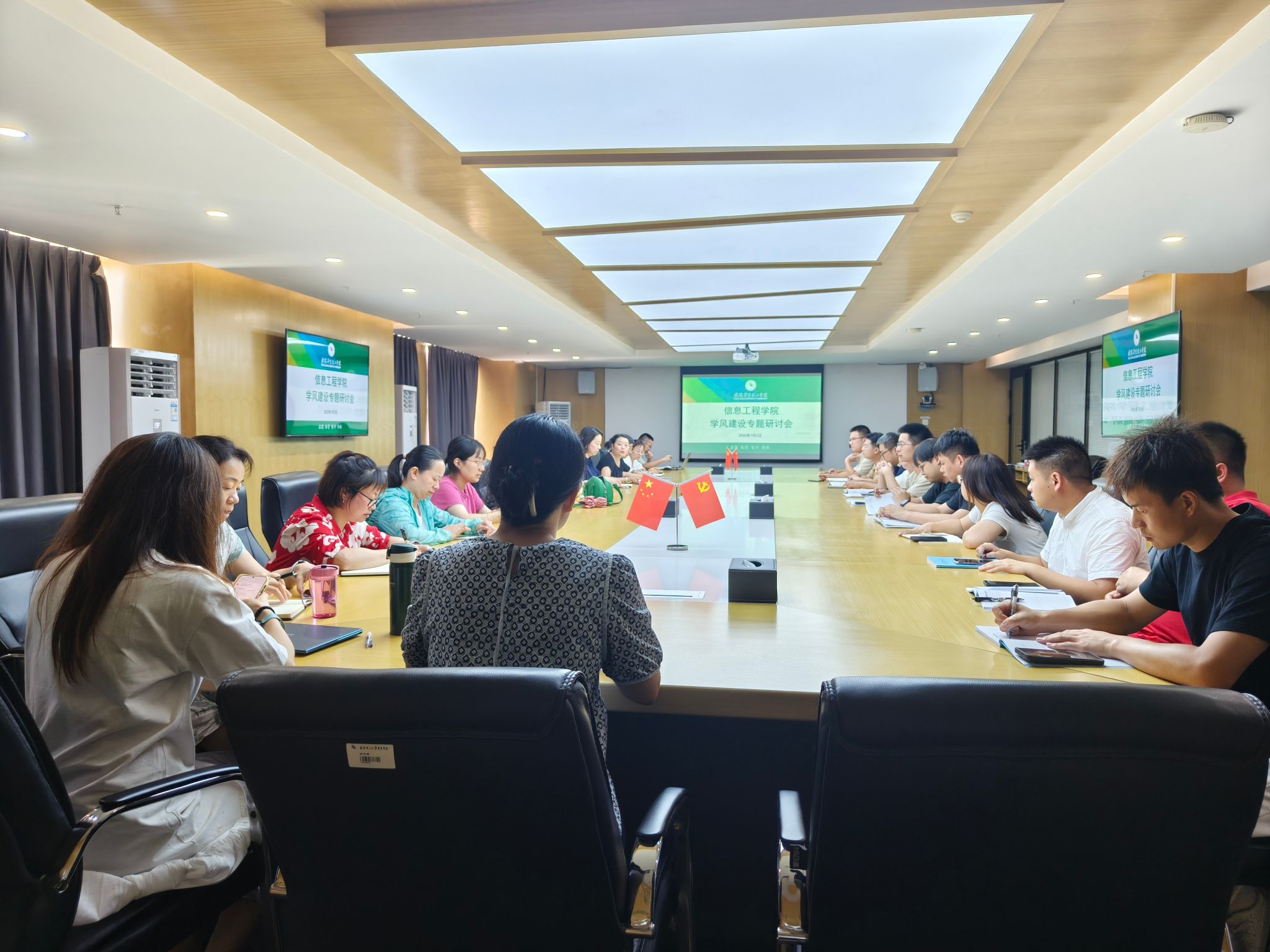 为深入推进学风建设,营造良好育人氛围,提升人才培养质量,我院于7月3日在综合楼1402会议室召开学风建设专题研讨会。学院党总支书记夏婷、党总支副书记张平、副院长王绪梅、赵京出席会议,与会的还有各系部、导师班主任、任课教师代表及全体辅导员。会议围绕学风建设的机制优化、学工队伍与教师队伍的协同配合等议题展开深入研讨。