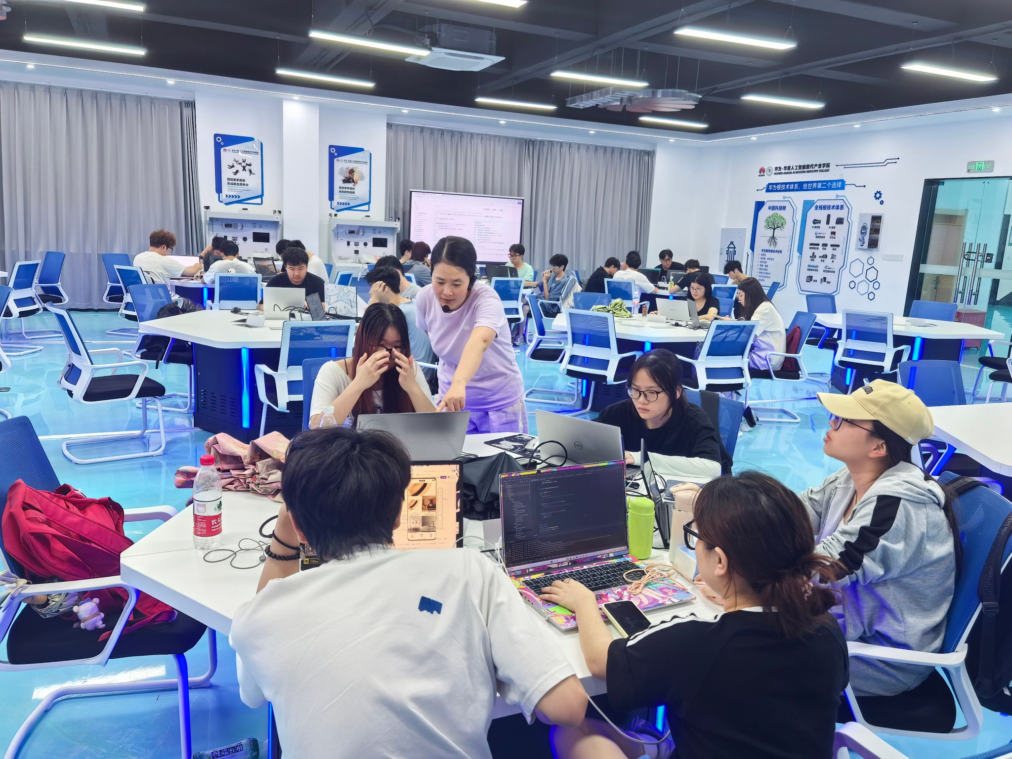 在实践环节中,同学们在414、412实验室的鸿蒙开发环境中,使用DevEco Studio集成开发工具和最新的鸿蒙实验箱,完成了多个典型应用场景的开发任务。从北向的第一个“Hello HarmonyOS”应用的运行,到南向的典型应用场景模拟,再到跨设备数据同步功能的实现,学生们在动手实践中不断巩固所学知识。两位老师注重因材施教,针对不同基础的学生提供个性化指导,鼓励小组协作与代码评审,营造了浓厚的学习氛围。