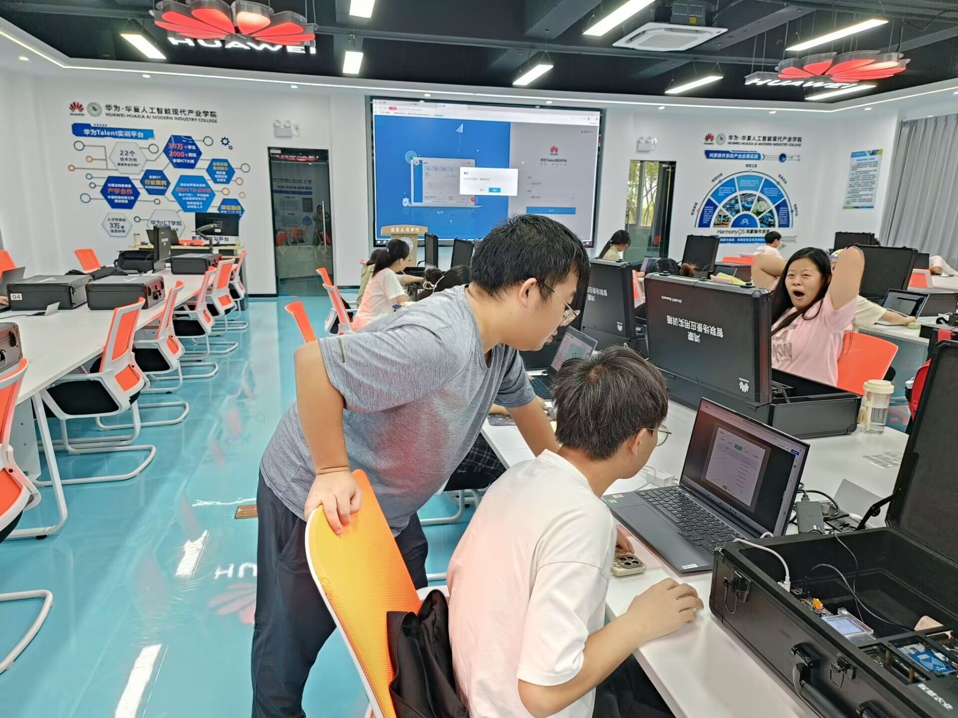 为深化产教融合、提升学生实践创新能力,信息工程学院计算机科学与技术专业于2025年9月1日至9月26日,在华为-华夏人工智能现代产业学院的414、412实验室成功开展为期四周的《专业综合实训》课程。本次实训聚焦国产操作系统发展前沿,以“鸿蒙南北向开发及应用培训”为主题,由黄佩、马德进两位老师担任主讲教师,分别负责鸿蒙北向应用、鸿蒙南向案例的实践教学工作,吸引了计算机科学与技术、软件工程、物联网等专业的百余名学生积极参与。