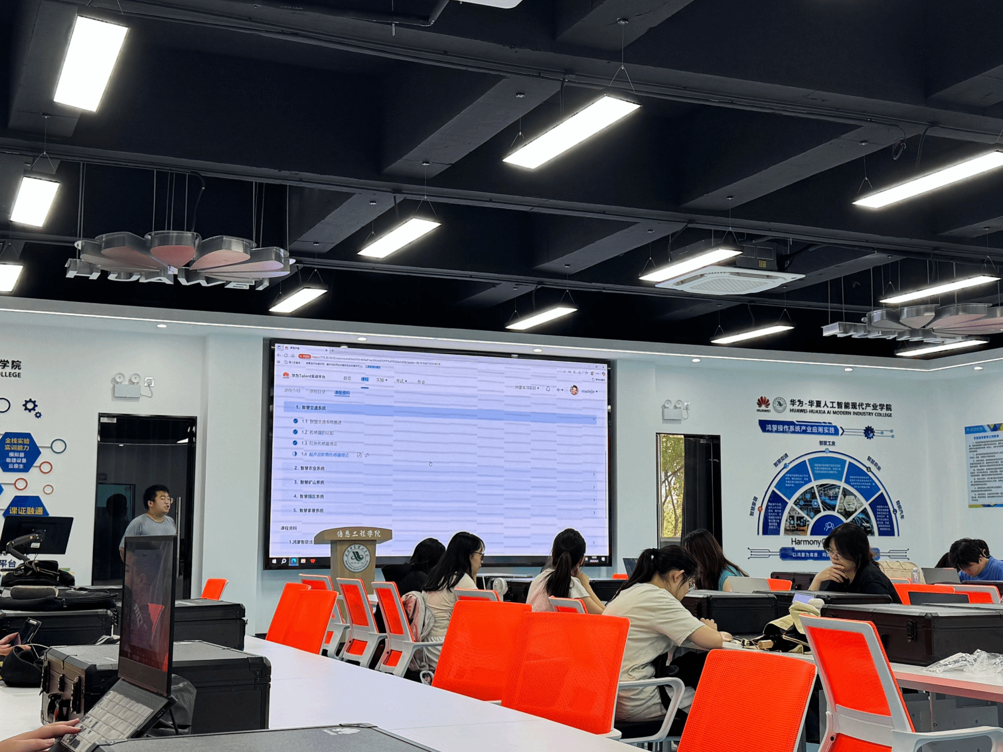 马德进老师主讲鸿蒙南向开发,马老师将底层硬件知识通过设备细致地给同学们进行讲解,通过分步分实验方式让同学们调试、运行,同学们在通关过程中将硬件知识和软件知识进行结合,提升了专业技能深度和广度。