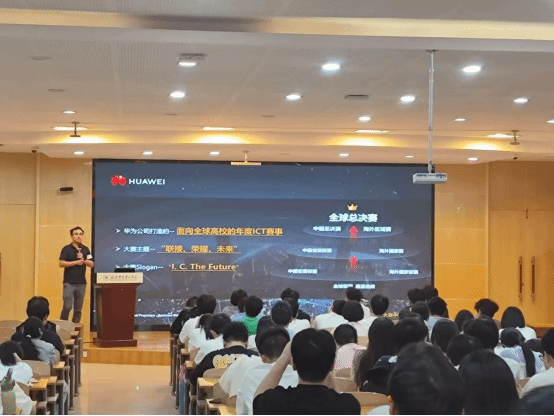 正值第十届华为ICT大赛火热报名之际,9月29日18:30分,嘉环科技股份有限公司教育事业部经理许明艳与解决方案经理陈新走进华为-华夏人工智能现代产业学院(以下简称产业学院),在2-201为现场200余名同学带来了一场精彩的ICT大赛路演宣讲,正式拉开了beat365第十届ICT大赛的备赛序幕。华为ICT赛事负责老师王海霞、雷正伟参与活动。活动由产业学院老师陈志忠主持。