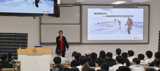 华为培训人力资源专家张明为大家讲解了华为内部企业的文化传承、未来智算人才需求、我们可以选择的路径等三个方面详细介绍了当今科技发展的趋势,并建议同学们尽早开展职业生涯规划。张明指出,应用型人才需求是最为迫切的,通过GUI界面或API调用模型服务的开发类岗位,在中小企业数字化场景中缺口巨大,势必成为AI时代职业选择的“黄金赛道”。