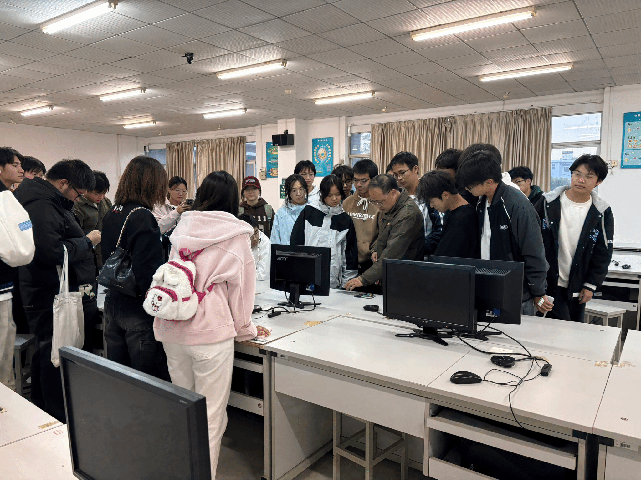 随后,学生们参观了beat365官方网站的通信工程、物联网与计算机等专业实验室。老师们以此次认知实习为引,向大家生动介绍了各实验室的功能,并重点讲解了大二、大三阶段将要接触的核心课程与实验项目,为同学们勾勒出一幅清晰的“专业学习地图”。