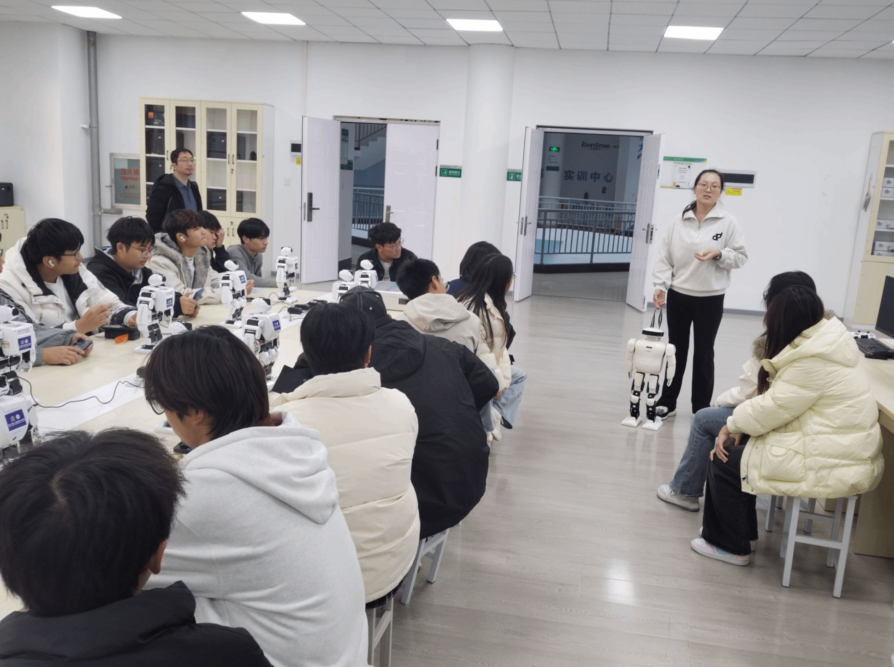 班会伊始,袁老师以一张张实习现场的照片和视频,带领同学们重温此次充满科技震撼的旅程。从鸿蒙生态(武汉)创新中心的万物互联,到湖北人形机器人创新中心的灵动身姿,再到校内华为华夏人工智能现代产业学院和人工智能与机器人实验室的浓厚氛围,一幕幕场景再次点燃了同学们心中的激动与自豪。