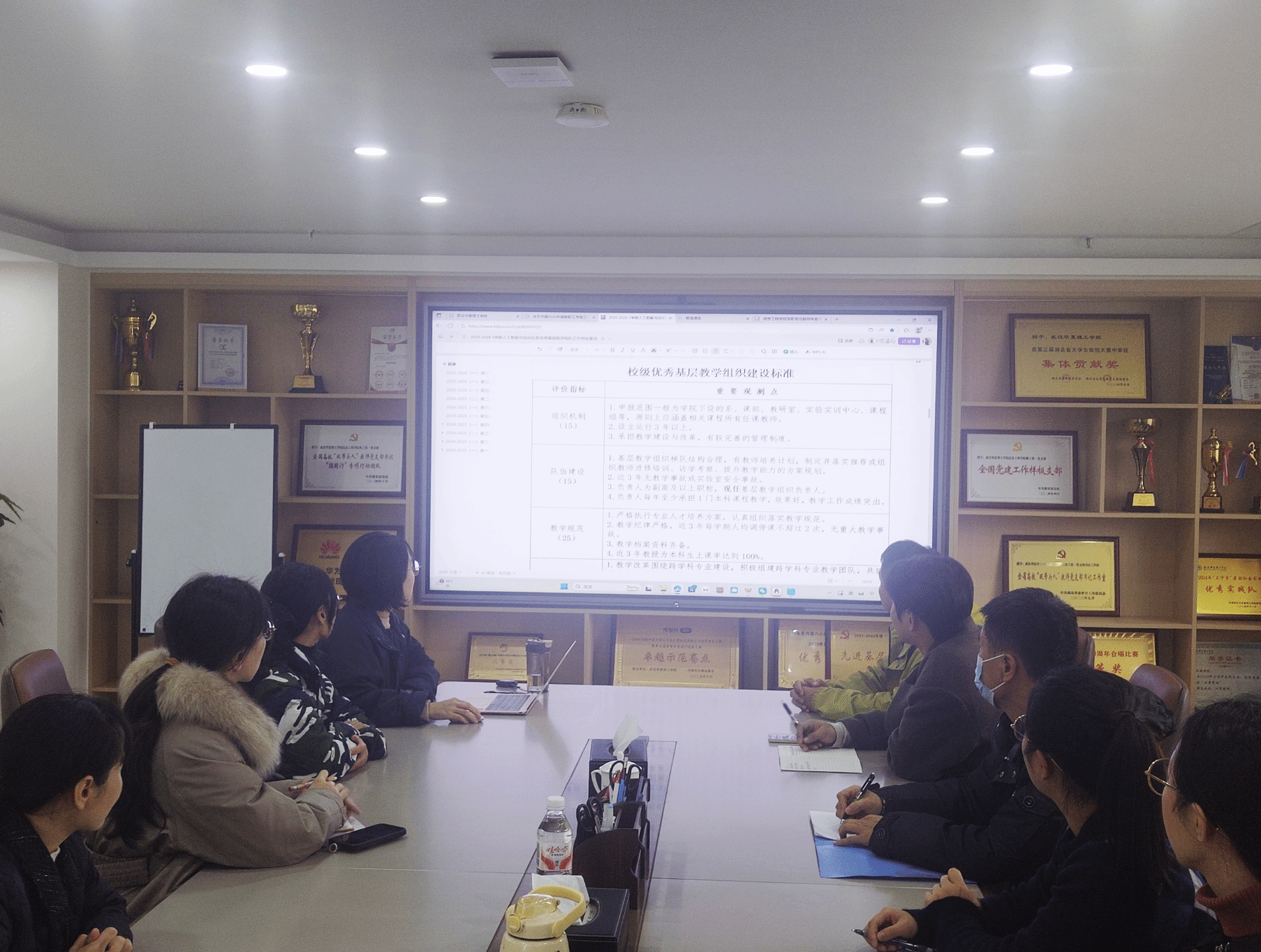 会议伊始,教研室主任结合学校《关于开展2025年度校级优秀基层教学组织评选工作的通知》,详细阐述了此次推进会议的召开背景与核心意义。他指出,校级优秀基层教学组织是衡量教学单位教学质量、团队实力与改革活力的重要标杆,自动化教研室作为支撑学院自动化专业发展的核心力量,覆盖专业从大一到大四所有核心课程教学,具备扎实的建设基础,此次本着冲击优秀基层教学组织,既是提升教研室整体实力的契机,更是助力学校“新工科”建设的责任担当。