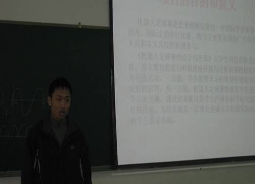 2011年3月我系共13项大学生科技创新项目立项成功,其中5项获得学院一等资助,其余为二等资助。项目立项后我系学生利用课余时间进行研究,指导老师在百忙中抽出时间进行指导,学生们克服各种困难,完成项目目标。本次共有4个项目组提出结题申请,计应2092班邓署娟负责的《高功率因数电子镇流器的开发设计》、计网1082班庞亚菲负责的《机器人足球赛的设计与开发》、测控1081班陈海林负责的《基于PLC的恒压供水过程控制系统的应用创新研究》及自动化1091班卢军雄负责的《多足智能机器人研究与设计》,每个项目负责人介绍项目情况后进行现场演示,然后回答评委老师及同学们的提问,经过紧张的评审,4个项目均达到项目立项目标,特别是《多足智能机器人研究与设计》及《机器人足球赛的设计与开发》不仅较好的完成各项目标并极大地引起在场学生的兴趣。《多足智能机器人研究与设计》项目组完全由指导老师带领学生进行制作六足机器人,小到各个零配件,大到各电路板均有项目组一起切割制作并组装,并赋予机器人各种功能,其能灵活自主行走、避障,并能播放和录制语音,且具有扩展功能;《机器人足球赛的设计与开发》项目组实现了机器人足球赛在计算机上的模拟仿真,组装实物车型机器人并通过蓝牙控制机器人的动作;《高功率因数电子镇流器的开发设计》、《基于PLC的恒压供水过程控制系统的应用创新研究》也基本大到设计目标。各项目使参与学生获益匪浅,不仅培养了学生专业学习的能力,也提高了解决实际问题的分析、设计及创新能力,激发学生的学习兴趣,提高学生的专业认同感;现场学生在听取了讲解及观看了演示后也进行纷纷表示愿意参加这样的科技创新活动。