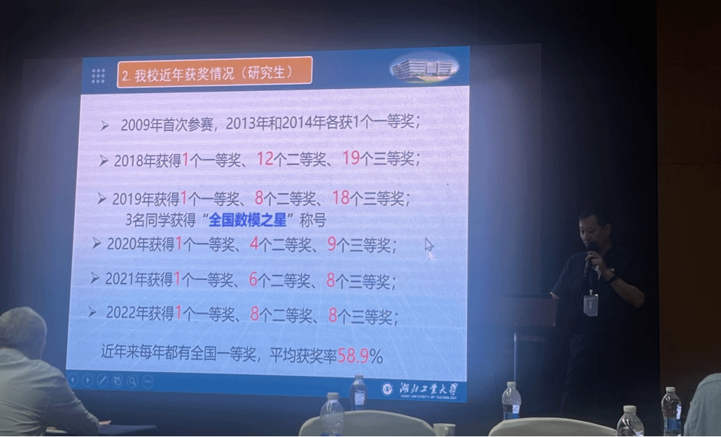 最后是中国地质大学的杨瑞琰教授发言,他分享了“地质大学开展数学建模活动点滴经验”,也是从教师和学生两个方面着手。这些竞赛带头人可谓呕心沥血,积极为老师和学生们谋福利,筹措资金,给予学生和指导老师正向的反馈,使得赛事有了良性的发展。
