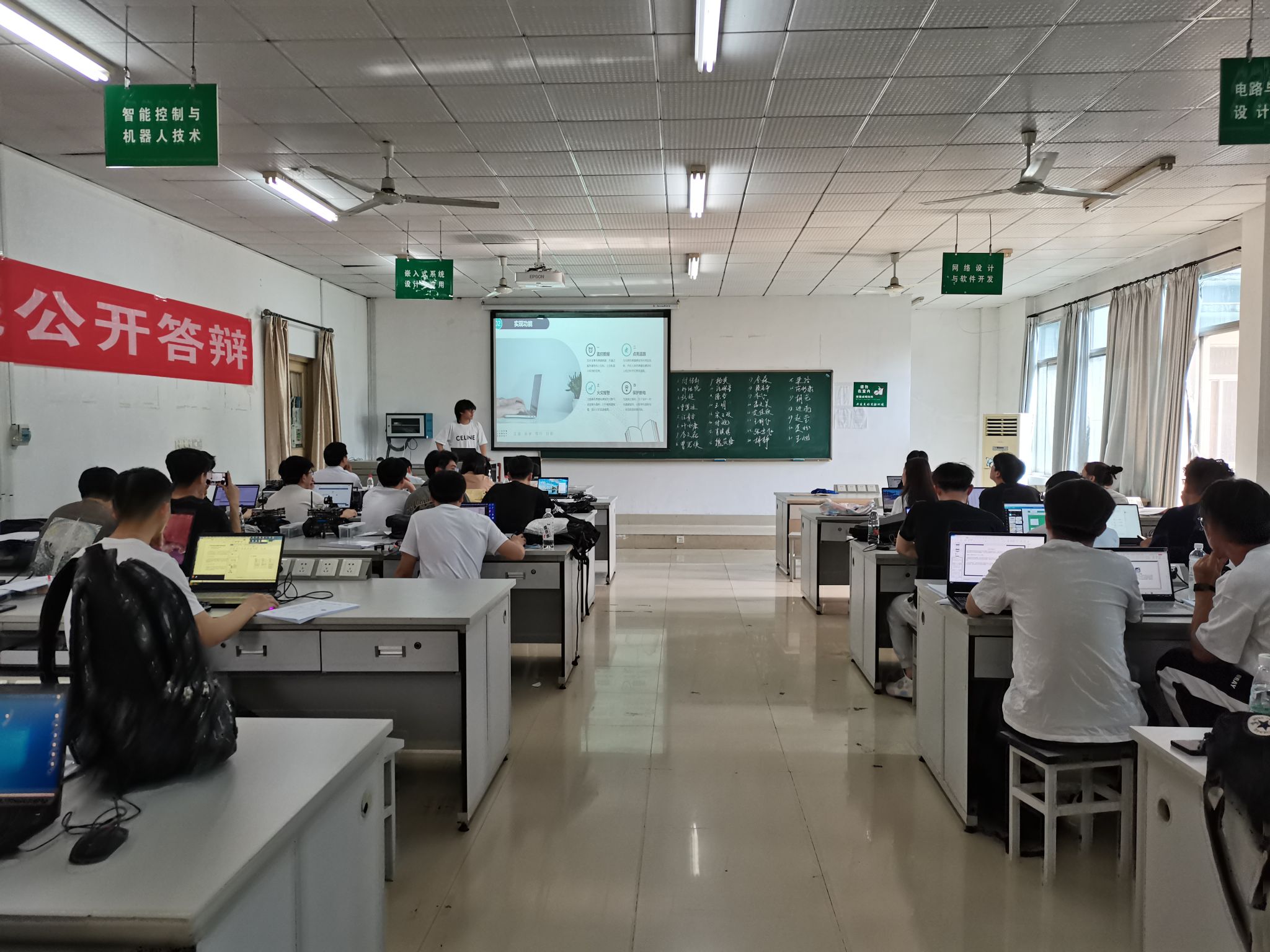 答辩时,同学们带着精心打磨好的论文定稿、查重报告来到现场,先用10分钟左右的时间讲解他们做了什么,怎么做的,做的结果如何,有什么意义,然后再在老师们的面前进行实物的演示,随后,老师们会对实物的实现过程与论文的内容提出相关问题,由学生现场回答,回答完后老师们再提出了建设性的意见和建议。