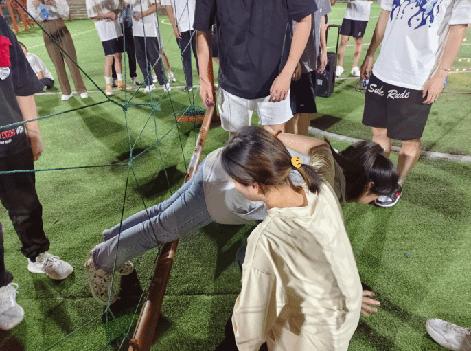 在最开始的热身环节,大家都还显得有点拘谨,但是在经过一系列的活动环节之后,大家的心在慢慢的靠近,慢慢的融合成为了一个牢不可分的大团体,大家的团队精神一直在加深。