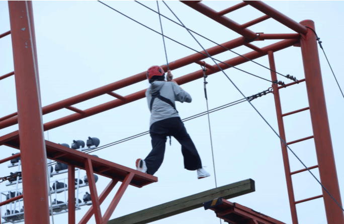 在“天面勘测”活动中,在体育学院专业人员的帮助下,每一个勇敢上到高台的同学也都勇敢迈出了那一步,就像梁梦凡老师说的:“‘那一步’不只这个活动的一小步,我相信在未来,不论面临什么困境,大家都会想到现在的‘那一步’,没有什么困难是跨不过去的!”。