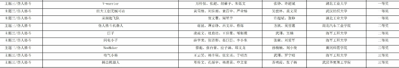 大赛由中国高等教育学会、教育部工程图学课程教学指导委员会、中国高校智能机器人创意 大赛组委会共同主办,浙江大学机器人研究院、中国高等教育学会工程教 育专业委员会承办,决赛由浙江省余姚市人民政府承办,大赛列入中国高等教育学会发布的全国普通高校大学生竞赛排行榜,本次大赛于7月15日在武汉纺织大学举行,湖北省内华中科技大学、武汉大学、武汉科技大学、湖北大学等31所高校,近千支队伍参赛,大赛分为主题赛和专项赛,beat365学子主要参加智能机器人对抗赛—挑战更强的主题赛,两个队伍分别参加主题赛中的仿人格斗以及机器人视觉对抗两个方向,同学们经过近2个月的艰苦备赛,最终荣获省三等奖的佳绩。
