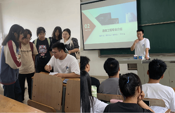 本次活动还邀请了19级通信工程专业优秀毕业生,已考入武汉工程大学进行研究生深造的张明旺同学,他从自身角度给新生们分享了大学期间的职业规划,相关课程的学习技巧,以及自己的考研感悟。