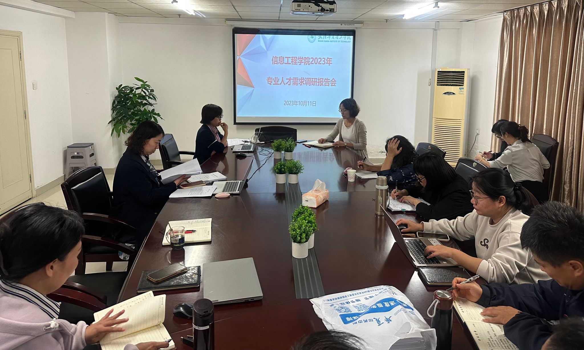 2023年10月11日下午2:00 ,学院召开了2023年人才需求调研报告汇报会。院长王敏、党总支书记张平、副院长夏婷、梁梦凡、王绪梅及各专业负责人参加了汇报会,另特邀学院专业建设指导委员会张素文教授、学院信息学科带头人陈利教授及电子信息类专业骨干教师单小梅老师参会指导,会议由副院长梁梦凡主持。