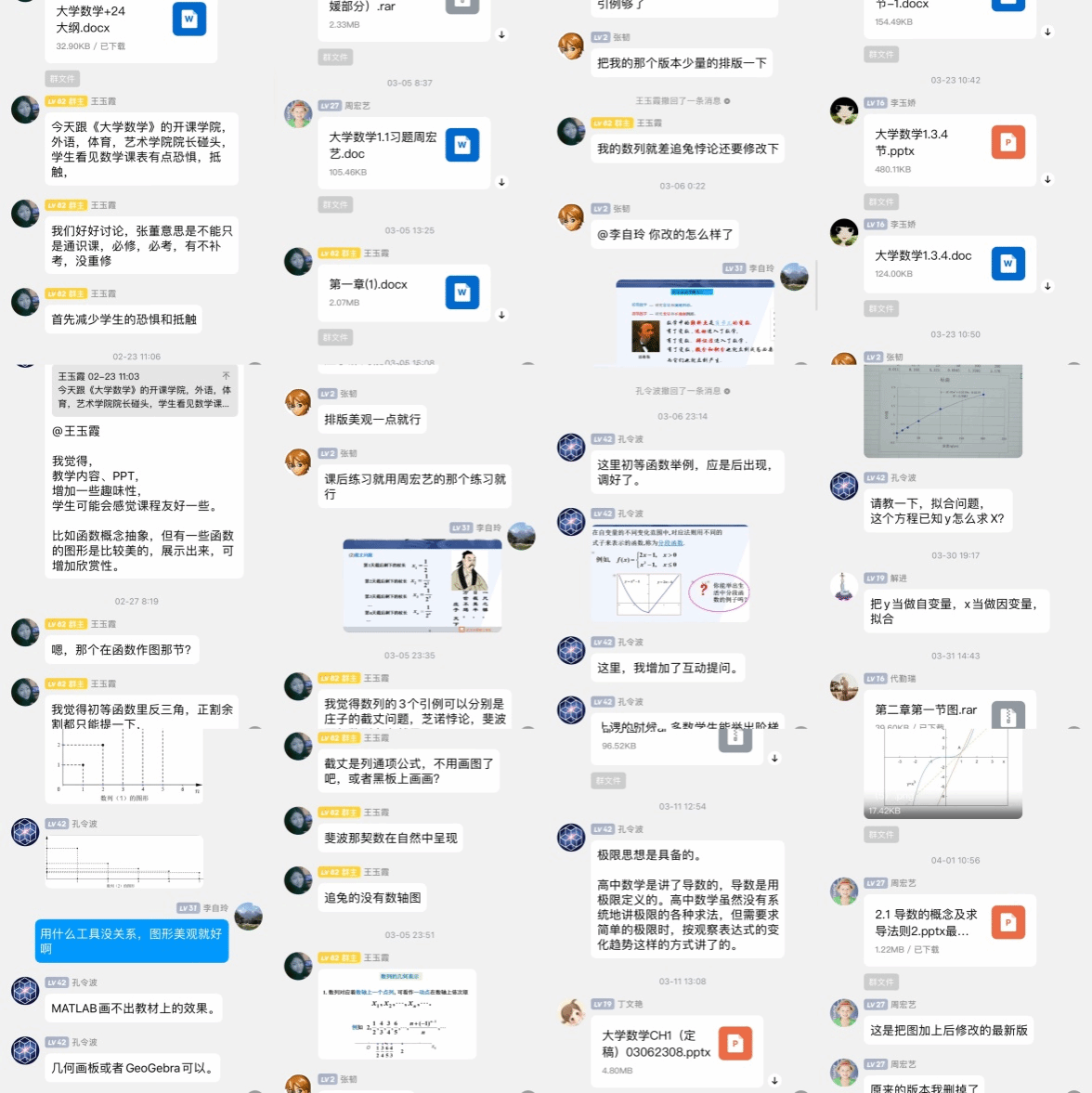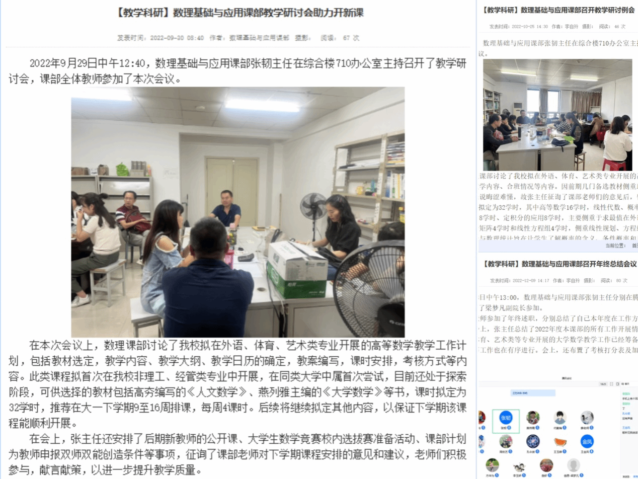 到2023年3月份,《大学数学》课程正式开课,数理基础课部数学教研室每周召开两到三次在线研讨会,继续征求各位老师的意见和建议,根据任课老师在《大学数学》课堂上的教学实况,反复研讨打磨,适时调整修改教案、课件、教学设计、教学过程等细节问题。在学校多部门的悉心协作下,数理课部最终顺利完成本课程的教学工作。