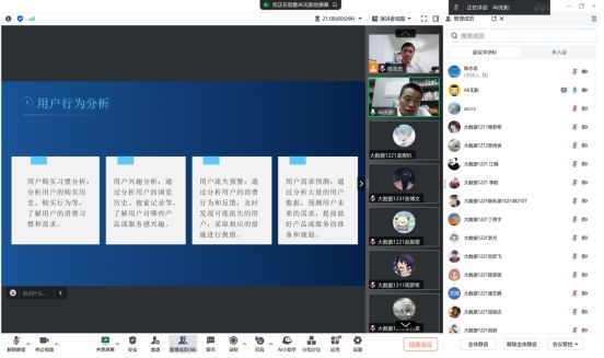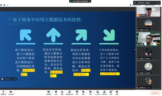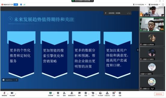 最后,何总分享和展望了电子商务未来发展过程中大数据技术应用新趋势、专业人才的培养和企业用人需求,也希望工作室中专业技能强、综合素质好的同学加入其企业,利用大数据与AI技术加速推进全场景融合,开启电商新时代。