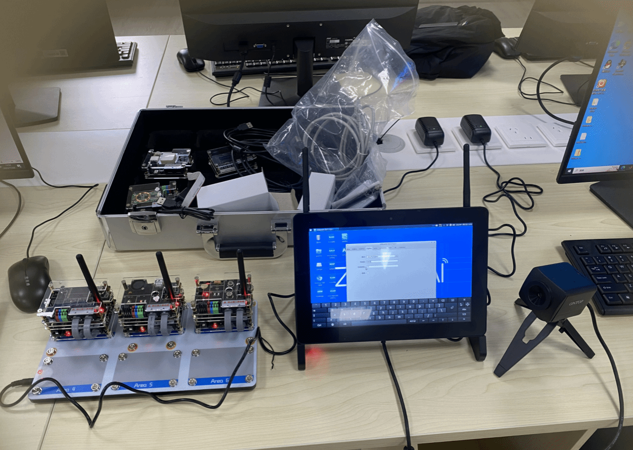 培训伊始,中智讯工程师对AI机器视觉/语言教学设备的试验箱硬件设备模块进行简单介绍,让各位老师对各独立模块的连接、供电以及使用功能有了初步的了解,老师们都呈现出极大的学习兴趣,较好的掌握了设备网关的连接、模块的连接等知识。