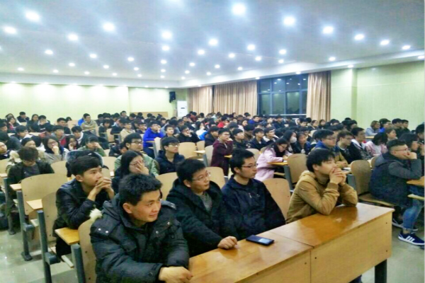 讲座伊始,刘女士首先为我们初步展示了NAO机器人的特性。其中NAO机器人拥有25个自由度及遍布全身的传感器。在对公司进行简单的介绍后,刘女士简要提及目前机器人行业在全球的发展状况。紧接着刘女士还用大量短视频向在座同学介绍了NAO机器人的硬件、软件的应用成果。之后通过一些案例,使得在座学生对NAO机器人的了解更加深入。在理解深奥的知识同时,刘女士还不忘用机器人给我们进行现场演示,无论是踢球,还是跳舞,都吸引着全场学生的目光。最后刘女士引用华中科技大学丁汉院士的“机器人产业战略地位是一个国家科技创新和高端制造业水平的重要标志”,为这次这次讲座拉下帷幕。