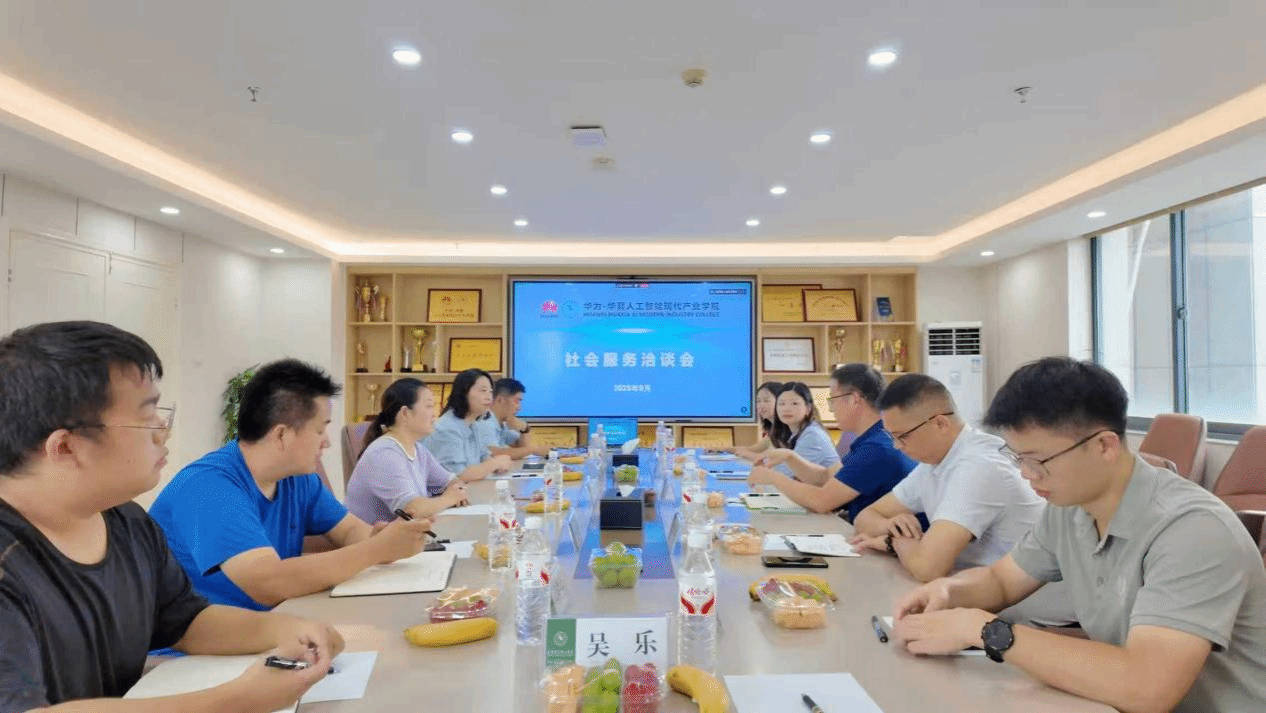 开营活动后为进一步推动学校与企业之间的深度合作,共同打造一个适应现代产业发展需求的现代化产业学院,校企双方于综合楼702室召开华为-华夏人工智能现代产业学院社会服务洽谈会。洽谈会上,校企双方代表就华为-华夏人工智能现代产业学院的建设与发展进行了深入而务实的交流。