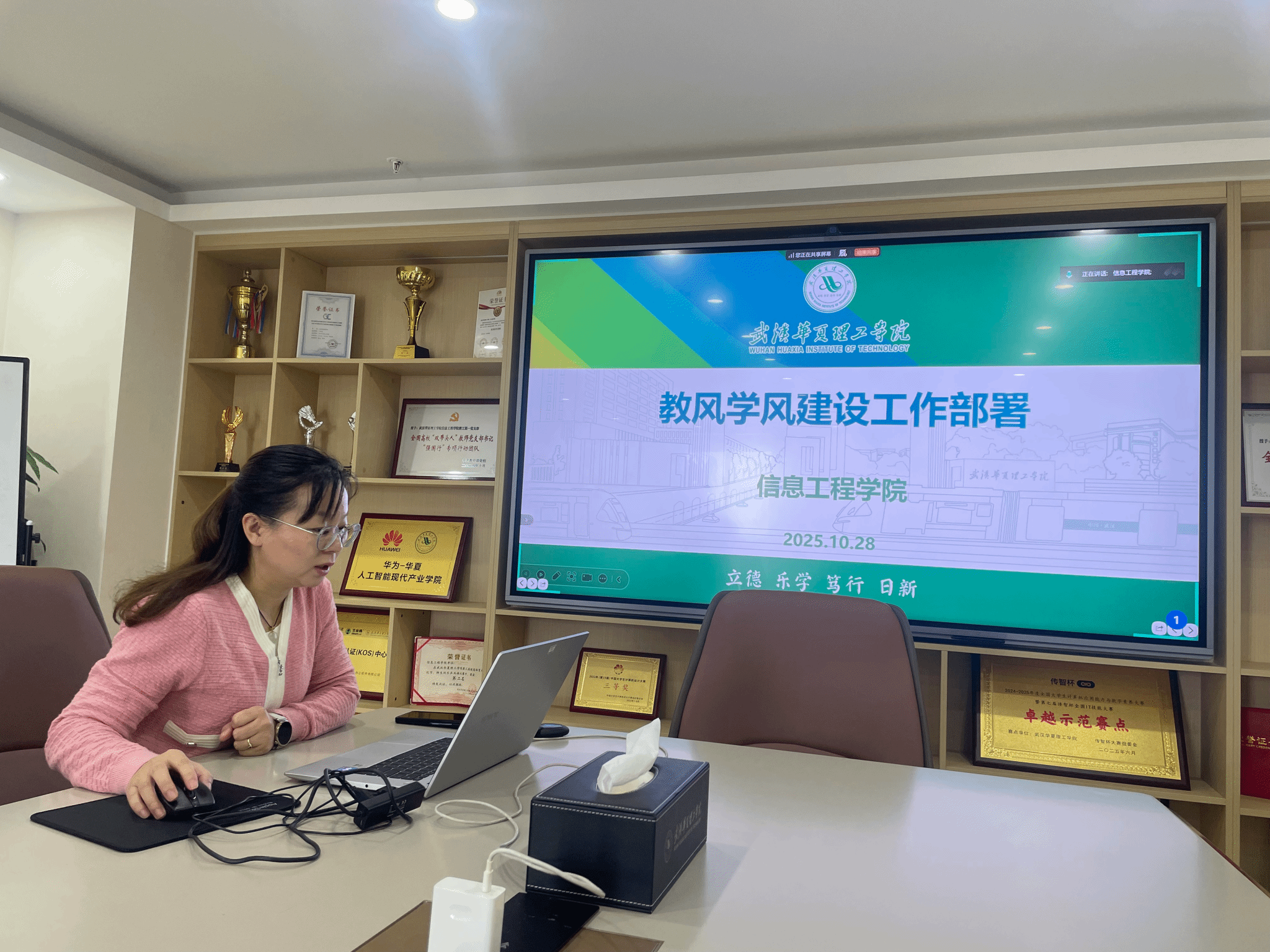 2025年10月28日中午12时30分,信息工程学院通过线上会议形式组织召开兼职教师座谈会,聚焦教风学风建设,进一步落实学院在10月24日全院大会上部署的教学管理要求。会议由赵京副院长主持,全体兼职教师参加。