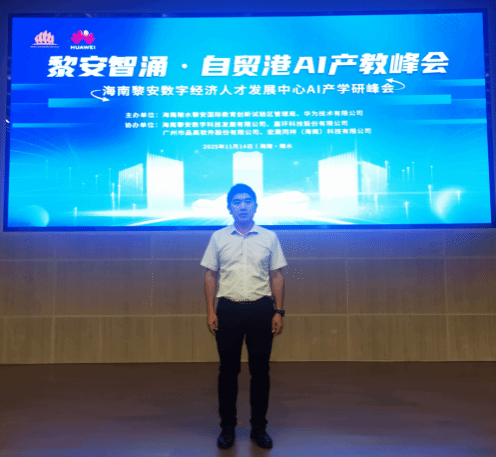 11月14日,黎安智涌自贸港AI产教峰会暨陵水黎安数字经济人才中心AI产学研峰会在海南举行。华为-华夏人工智能现代产业学院陈志忠老师应邀参会。