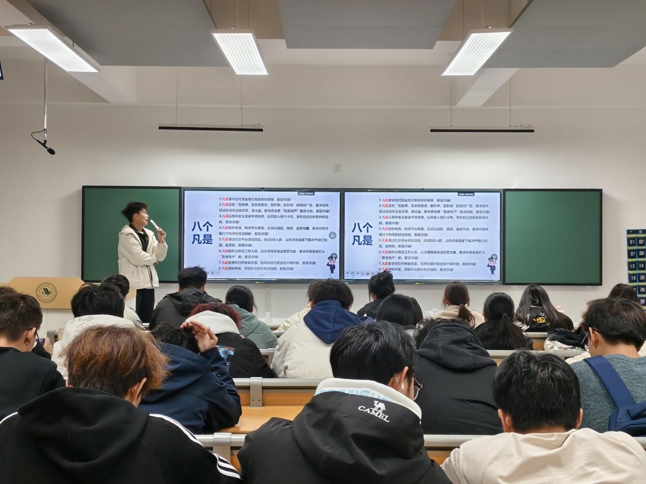 活动最后,同学们围绕“身边的诈骗隐患”展开讨论,分享自身或亲友遇到的诈骗苗头,进一步深化了反诈认知。本次班会以“普法+案例+实操”的形式,让反诈知识从“纸面”落到“实践”,有效提升了班级同学的反诈能力与安全意识。