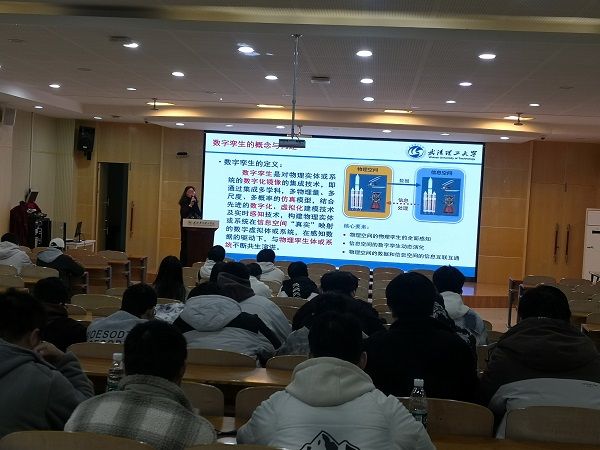 娄平教授作为IEEE IES分会副主席及智能体领域专家,围绕数字孪生技术的核心内涵、智能化升级路径及多场景应用展开深入讲解。她指出,数字孪生通过“物理实体+数字镜像”的创新模式,正在重塑高端装备的全生命周期管理逻辑,尤其在状态监测、故障预测与运行优化中实现“以虚映实”“以虚预实”“以虚优实”的突破。结合工业大数据与智能装备案例,娄教授生动展示了该技术在制造、通信等领域的实践价值,为学生们描绘了未来技术融合的广阔图景。