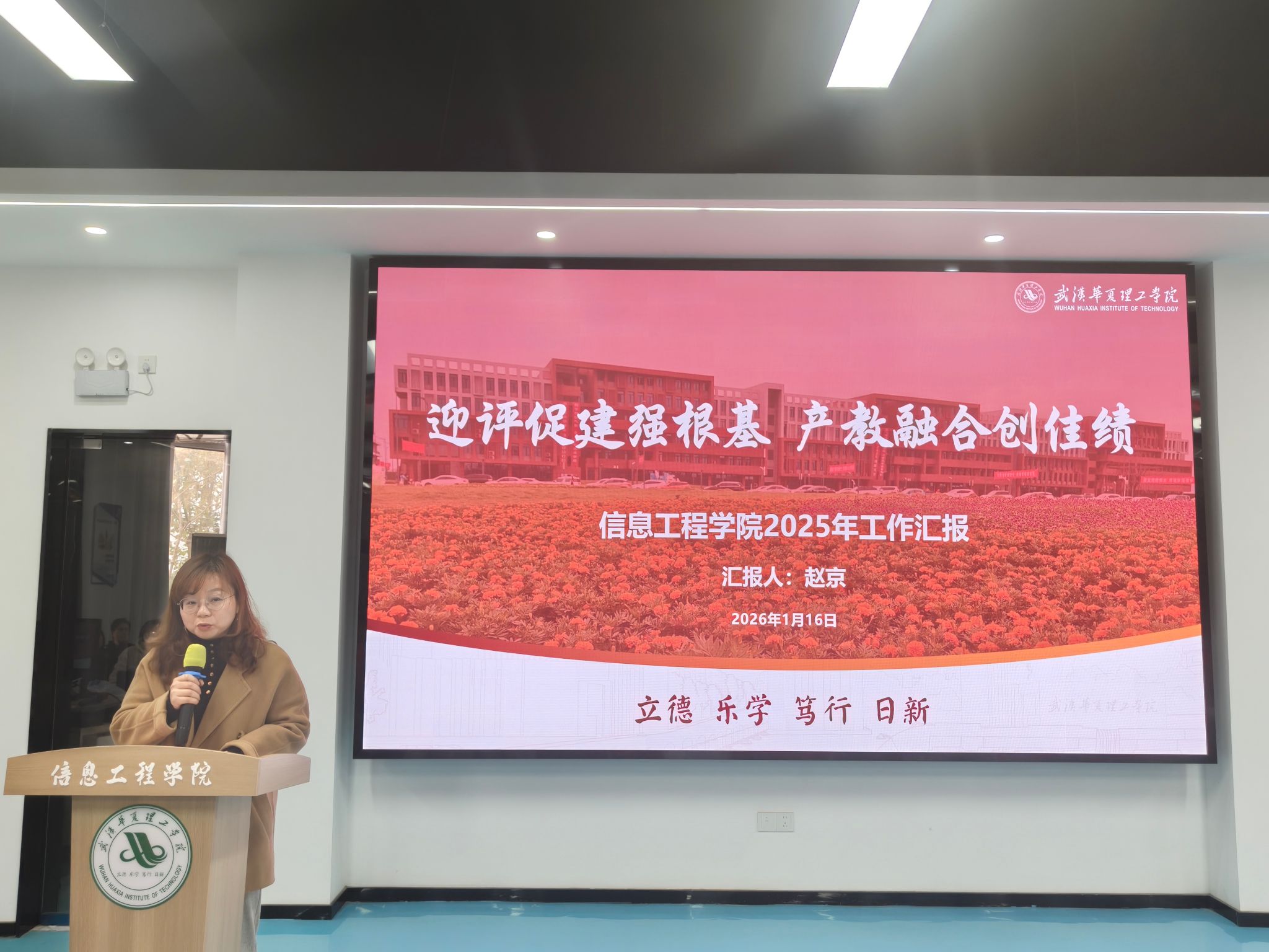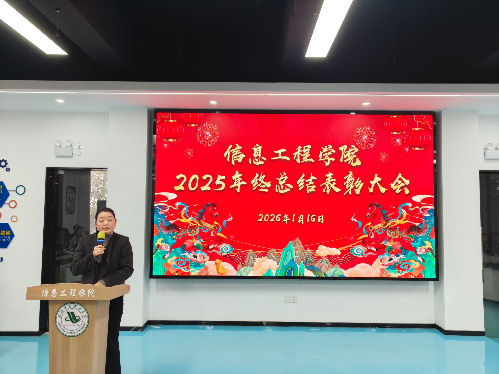 1月16日上午,信息工程学院2025年终总结表彰大会在412实验室隆重举行。信息工程学院院长夏婷、党总支副书记张平、副院长王绪梅、副院长赵京及全体教职员工齐聚一堂,共同回顾过去一年的奋斗历程,展望未来发展蓝图。