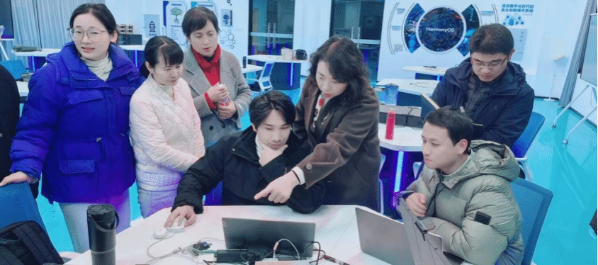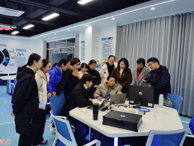 一是华为教学平台操作:夏老师结合教学场景,讲解登录流程、权限设置等关键操作,教师们通过实操熟练掌握课程创建、学员导入、作业批改等功能,成功发布自制教学资源并完成模拟授课测试,具备线上线下融合教学能力;二是相关设备实操:聚焦设备登录配置、网络调试等核心技能,夏老师以 “理论 + 演示 + 手把手指导” 拆解难点,教师分组实操、互助探讨,攻克技术难关,完成设备基础操作、数据采集处理等演练,提升了昇腾硬件实操应用能力。
