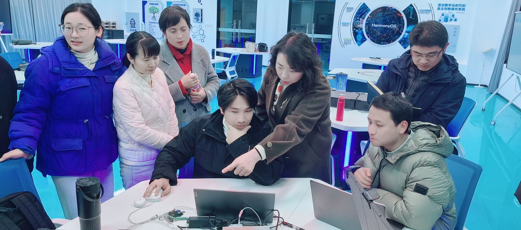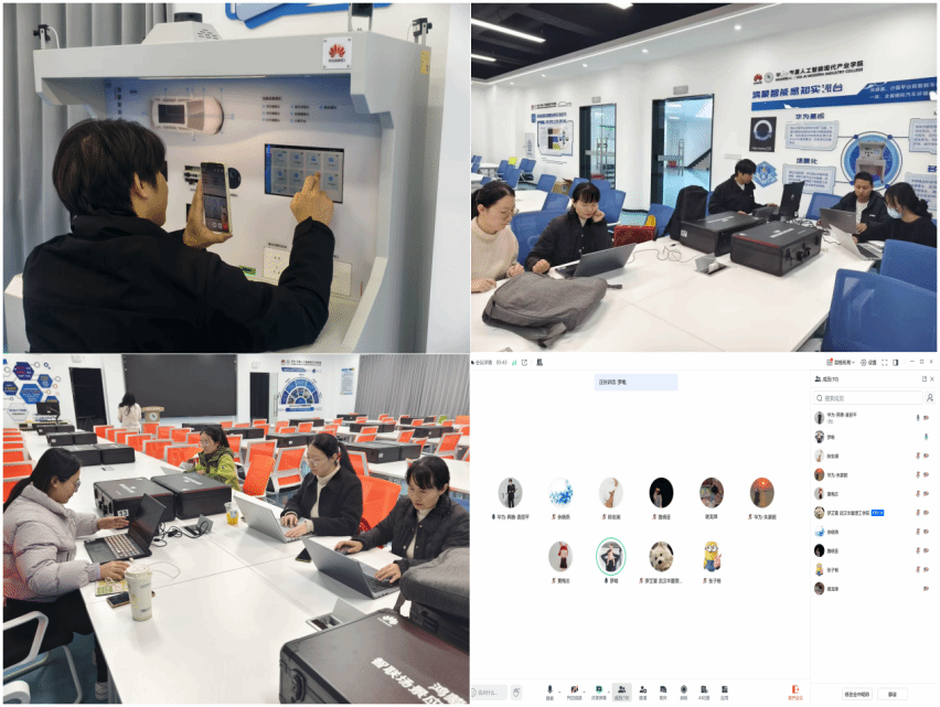 为快速理解华为课程体系、掌握教学资源,系部通过线下集中备课、线上会议交流、会后自主学习等方式推进本轮备课工作。系部定期组织线上研讨会议,教师们分享各自的备课进度、分享实验操作心得,针对跑通实验过程中遇到的技术瓶颈、教学适配难题展开集体攻关,形成“发现问题—研讨方案—解决优化”的闭环机制。各位教师主动利用碎片化时间进行钻研,逐一对接华为课程资源包中的实验项目,从实验环境配置、代码编写调试到结果分析,全程亲自动手实操,成功跑通大部分实验项目,为下学期开展跟课积累了丰富的经验。此外,系部围绕华为课程大纲、教学课件等资料继续进行研讨,初步明确理论教学与实践操作的衔接要点。1月26—27日,华为技术专家在实验室对系部教师开展了集中培训,针对华为课程资源包的使用方法、实验平台搭建、实践项目设计等内容进行指导,帮助教师进一步熟悉华为开发平台的操作逻辑。