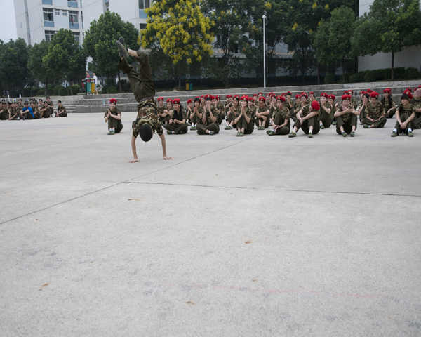 烈日当空,同学们在教官的口令下做着整齐的动作,迈着坚毅的步伐,努力的训练着。几天来,他们投入到了各个项目训练当中,齐步、正步、齐正步互换......随着一声哨响,同学们休息的时间到了。休息时,同学们感觉很累,教官为活跃气氛,带领着大家做娱乐活动,时不时有同学自告奋勇来表演节目,队列里不时地传来欢声笑语和阵阵掌声。表演之余,教官和同学们也是有说有笑,展现了训练时的严肃和休息时的轻松。