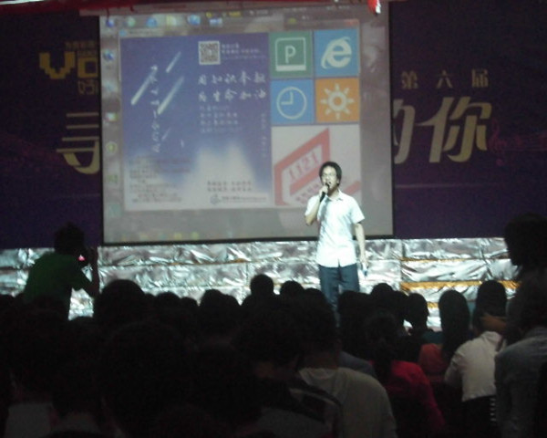 持续两个多小时的活动接近了尾声,在主持人宣讲此次竞赛结果的后期评比及相关事宜时,我有幸采访了本系计算机科学与技术1121班的选手徐凯,作为本系优秀的两支优秀代表之一(另外一支是自动化1121班),该班的此次展示赢得了较多的掌声。他表示,此次特团活动,他们班立足于自己的专业,组织电脑维修队,在很短的时间内就为六十多位师生解决了各种电脑故障。“用知识奉献,为生命加油”,他们的活动主题就是他们为自己最好的代言。