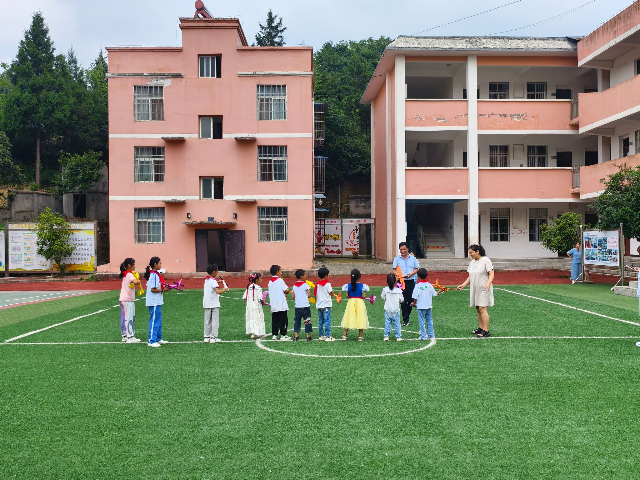 实践队先来到彭家沟小学,看望学生的同时,给学生送去了学习文具和运动器材,彭玉生校长热情迎接了我队一行,带领参观了教学楼、食堂、宿舍等校园场所,对即将开始的支教活动表示欢迎。彭贝贝表示,让大学生亲身走进山区,发挥专业特长,希望能给乡村儿童带来充实的假期,助力儿童的成长成才。