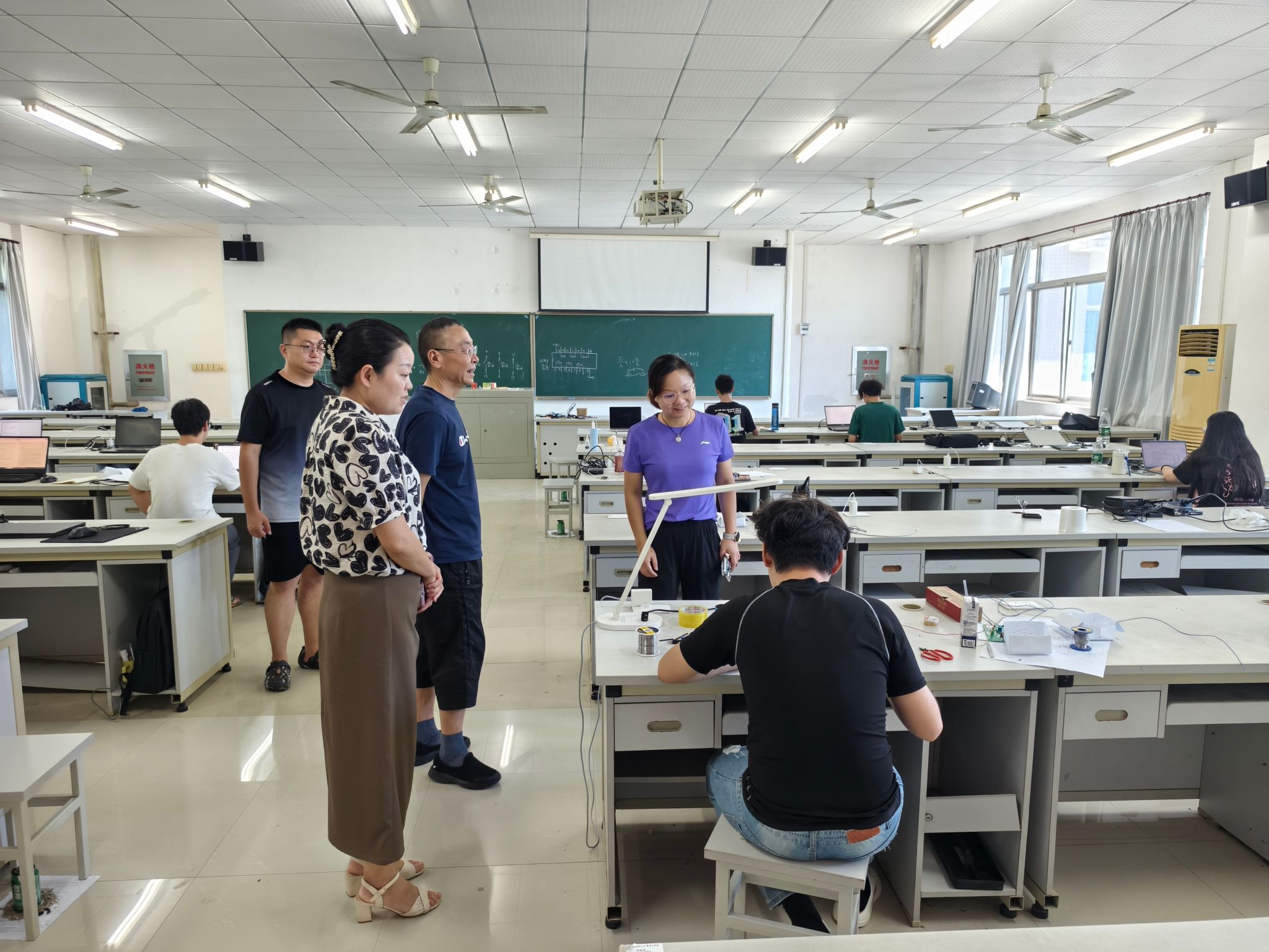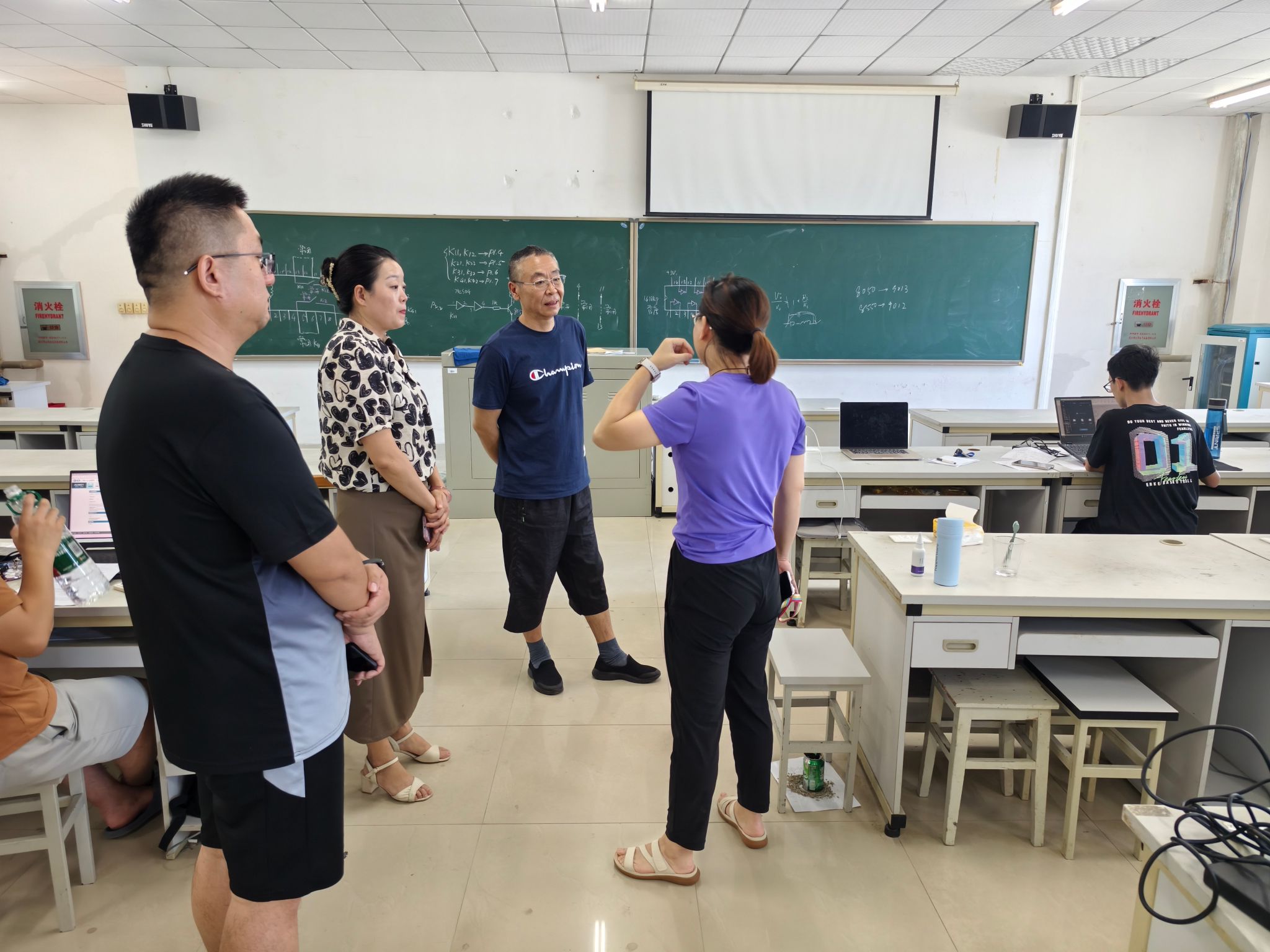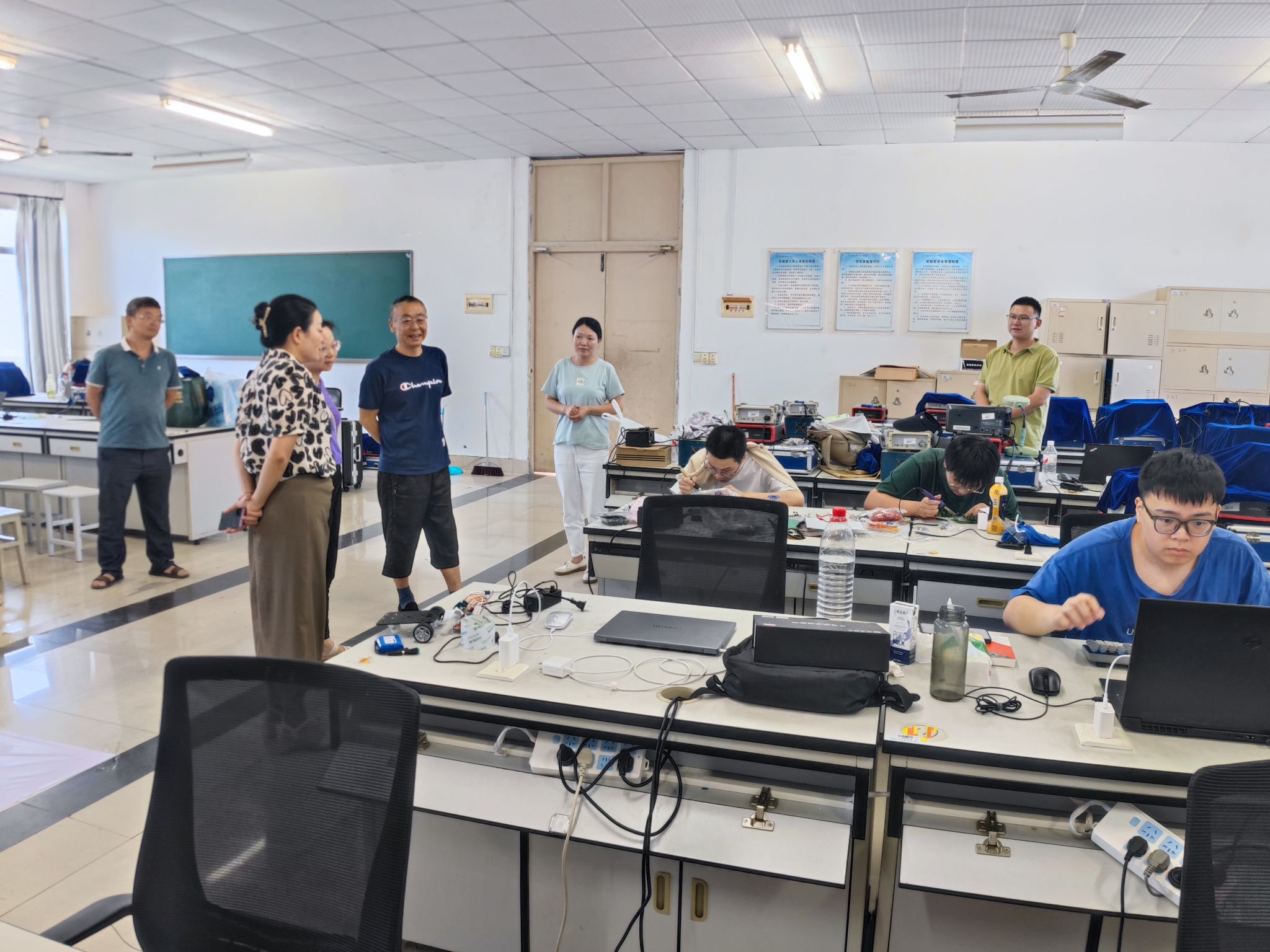 李海民副校长与师生亲切交流,详细询问备赛进展情况、遇到技术难题以及生活中需要的帮助,他对师生们在炎炎夏日中依然保持高涨的备赛热情和专注的工作态度给予肯定,鼓励师生们要继续发挥创新思维,灵活运用专业知识,不断优化成果,在大赛中展现学校风采,争取获得优异成绩。